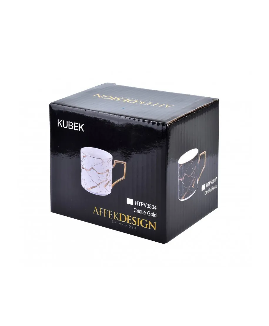 Porcelanowy kubek marki AFFEKDESIGN z kolekcjinCRISTIE BLACK. Unikatowy design sprawdzi się w każdym eleganckim wnętrzu.nDodatkowo złoty wzór i zdobione ucho sprawi, iż jest to niepowtarzalnynprezent.nNie należy stosować w kuchence mikrofalowej i zmywarce.nnPojemność: 360mlnWymiary kubkanwysokość:9.0cmnśrednica:8.5cmnśrednica z uchem:12cmnn