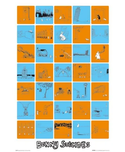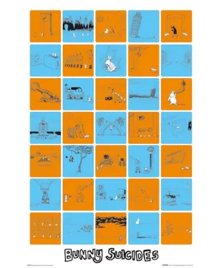 Szukasz czegoś ciekawego na ścianę ? Bunny Suicides - plakat który będzie oryginalnym dodatkiem do każdego wnętrza. Głębokie nasycenie barw i ostrość obrazu sprawi, że nie będziesz mógł od niego oderwać wzroku. Na Twoją ścianę zwróci uwagę każdy kto Cię odwiedzi. Lubisz produkty oryginalne ? Plakat posiada licencję, to oficjalne wydanie. Powierzchnia plakatu jest matowa, dzięki temu nie odbija intensywnego światła. Papier jest mocny a obraz trwały. Możesz cieszyć się nim przez długie lata.