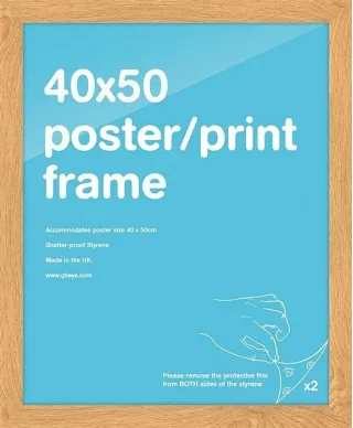Ramka drewniana do oprawiania zdjęć, plakatów i reprodukcji. Solidna i estetycznie wykonana, produkcja angielskiej firmy. Rama jest kompletna i złożona, składa się z profili wykonanych z płyty drewnianej o szerokości 3 cm, front to pleksa o grubości 1mm o przeźroczystości szkła. Plecy wykonane są z solidnej płyty HDF o grubości 2 mm. Każda rama posiada haczyki/wieszaki umożliwiające powieszenie obrazu w pionie lub poziomie.