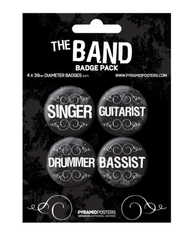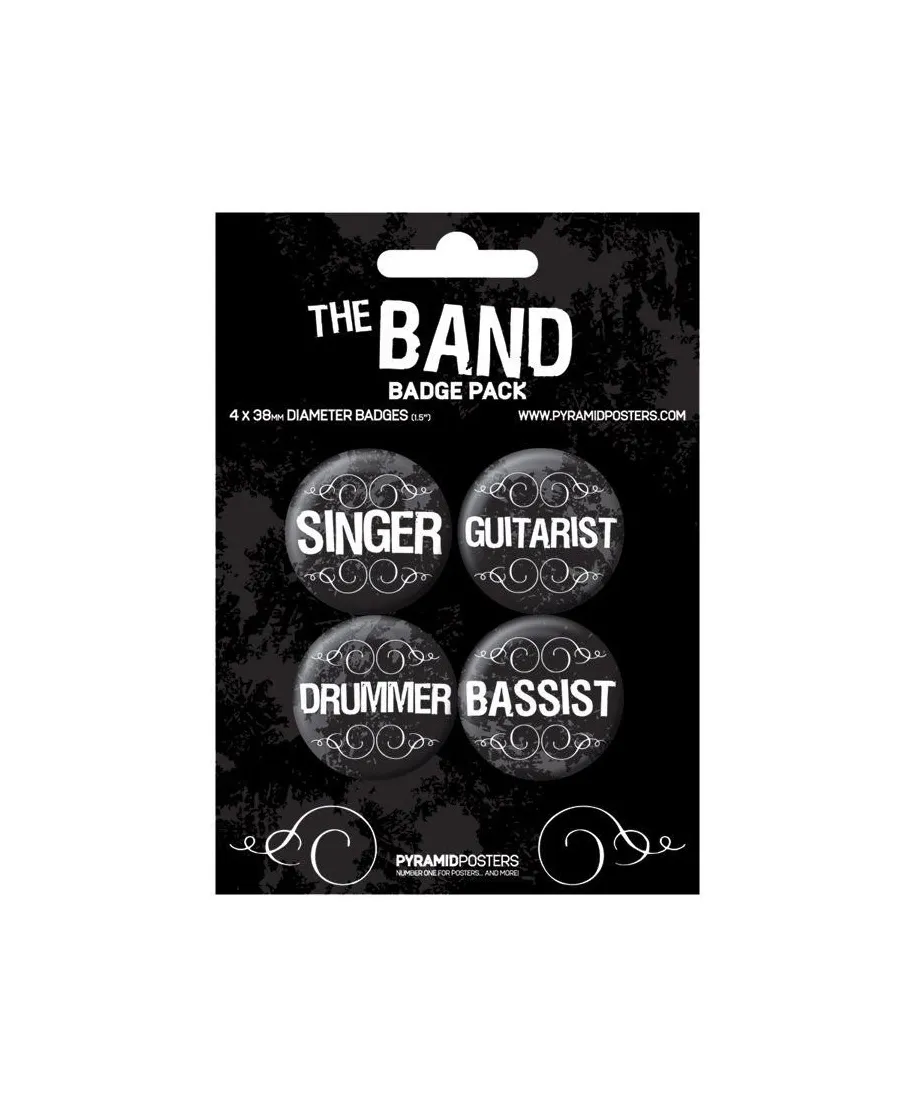 Zestaw czterech kolorowych przypinek The Band dla dzieciaków i młodzieży.