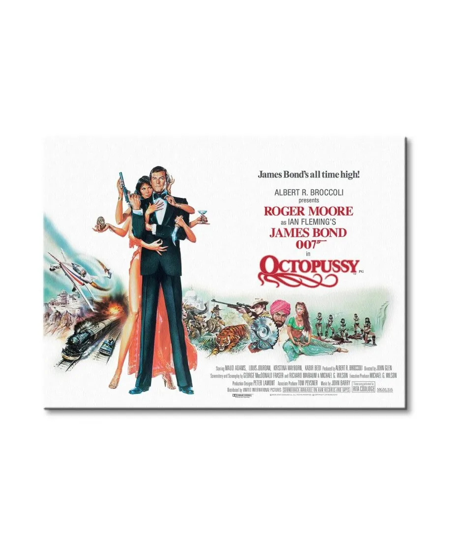 Oryginalny obraz na płótnie noszący nazwę James Bond (Octopussy) .Autorstwa: nieznany Szukasz oryginalnego obrazu na ścianę ? Wybierz jeden z naszej kolekcji! Fantastyczne barwy,obrazy charakteryzuje wysokie nasycenie barw i ostrość,nie sposób oderwać od nich wzrok. Kolory obrazu utrzymują się przez długie lata. Płótno wysokiej jakości,obrazy wykonane na płótnie bawełnianym 300g/m2 są mocne i trwałe,świetnie rozkłada się na nich farba a struktura płótna jest naturalna. Lubisz produkty markowe ? obraz jest oryginalny, to oficjalne wydanie licencjonowanego producenta. Trwałe kolory,dzięki dodatkowo lakierowanej powierzchni kolory obrazów są żywe przez dziesięciolecia. Solidna rama,blejtrama na której naciągane jest płótno wykonana jest z naturalnego, sosnowego drewna.Jest mocna i gruba. Obraz jest trwały i solidny. Zadrukowane boki,każdy egzemplarz obrazu posiada zadrukowane boki,dzięki temu można powiesić go na ścianie bez dodatkowej oprawy. Jak zawiesić obraz na ścianie ?Nic prostszego ! Wystarczy gwóźdź w ścianie na którym opiera się górna listwa obrazu. Bezpieczna wysyłkaDbamy o bezpieczeństwo obrazów podczas transportu.Każda przesyłka z obrazem jest ubezpieczona a ten zapakowany jest w solidne, specjalnie zaprojektowane pudełko. Szczegóły techniczne:wydruk na płótnie bawełnianym 300g/m2sosnowe krosna o grubości 2 cm i szerokości 3,5 cmdruk cyfrowywymiary obrazu 80x60 cmmarka: Art Group