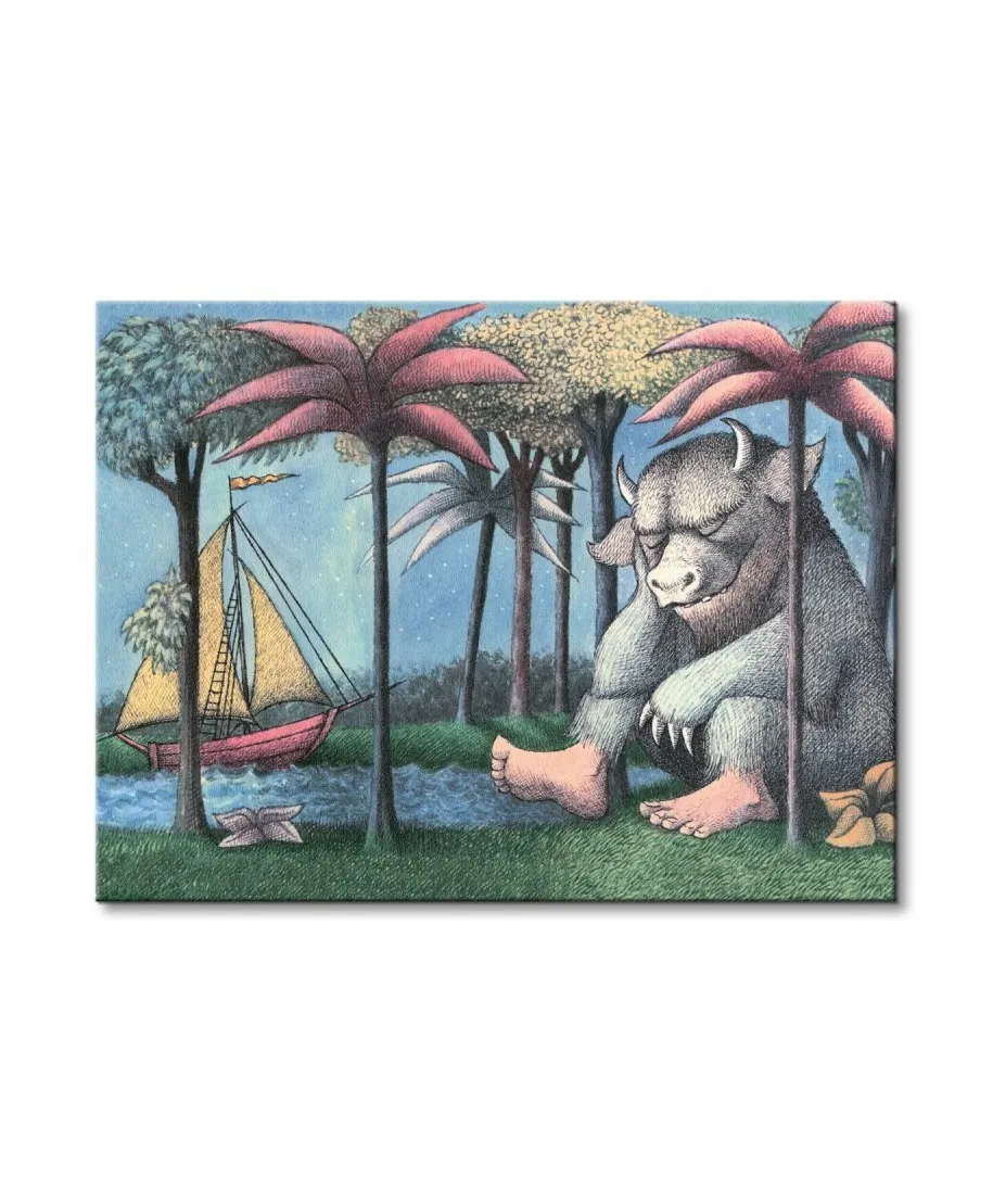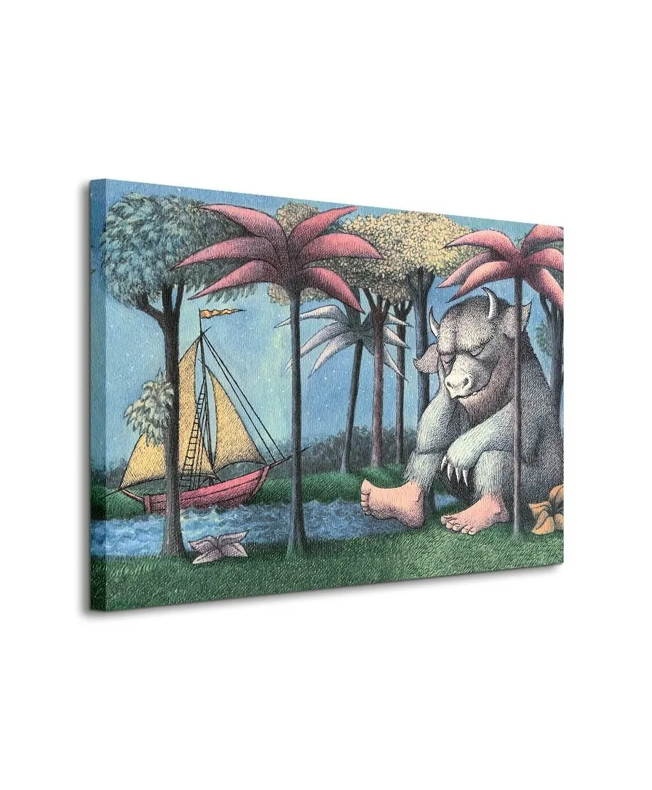 Oryginalny obraz na płótnie noszący nazwę Where the Wild Things are .Autorstwa: Maurice Sendak Szukasz oryginalnego obrazu na ścianę ? Wybierz jeden z naszej kolekcji! Fantastyczne barwy,obrazy charakteryzuje wysokie nasycenie barw i ostrość,nie sposób oderwać od nich wzrok. Kolory obrazu utrzymują się przez długie lata. Płótno wysokiej jakości,obrazy wykonane na płótnie bawełnianym 300g/m2 są mocne i trwałe,świetnie rozkłada się na nich farba a struktura płótna jest naturalna. Lubisz produkty markowe ? obraz jest oryginalny, to oficjalne wydanie licencjonowanego producenta. Trwałe kolory,dzięki dodatkowo lakierowanej powierzchni kolory obrazów są żywe przez dziesięciolecia. Solidna rama,blejtrama na której naciągane jest płótno wykonana jest z naturalnego, sosnowego drewna.Jest mocna i gruba. Obraz jest trwały i solidny. Zadrukowane boki,każdy egzemplarz obrazu posiada zadrukowane boki,dzięki temu można powiesić go na ścianie bez dodatkowej oprawy. Jak zawiesić obraz na ścianie ?Nic prostszego ! Wystarczy gwóźdź w ścianie na którym opiera się górna listwa obrazu. Bezpieczna wysyłkaDbamy o bezpieczeństwo obrazów podczas transportu.Każda przesyłka z obrazem jest ubezpieczona a ten zapakowany jest w solidne, specjalnie zaprojektowane pudełko. Szczegóły techniczne:wydruk na płótnie bawełnianym 300g/m2sosnowe krosna o grubości 2 cm i szerokości 3,5 cmdruk cyfrowywymiary obrazu 80x60 cmmarka: Art Group
