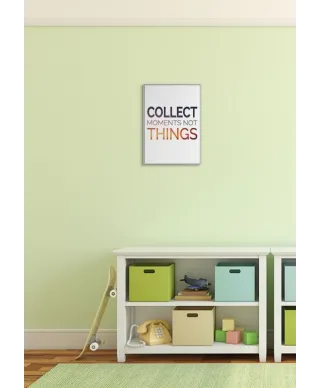 Plakat na ścianę zatytułowany Collect moments not things Szukasz oryginalnych, wykonanych z najwyższą starannością dekoracji ? Drukujemy dla Ciebie na materiałach najlepszej jakości a nasi graficy ciągle przygotowują ciekawe, nowoczesne wzory plakatów. Plakat drukowany na grubym i mocnym papierze satynowym o gramaturze 220 g/m2 przez polskiego producenta. Dzięki temu umieszczony w ramie nie marszczy się i świetnie prezentuje przez długi czas. Powierzchnia plakatu jest matowa, zadrukowana w technologii druku cyfrowego co pozwoliło uzyskać głębokie nasycenie kolorów i niesamowitą ostrość obrazu. Wybierając ten produkt masz pewność, że otrzymasz fantastyczną jakość. Wszystkie plakaty z naszej oferty posiadają licencję, otrzymasz więc oryginalny produkt. Plakaty zostały wyprodukowane przy użyciu ekologicznych atramentów co czyni je przyjaznymi dla środowiska. Wymiary plakatów to około 50x70 cm . Opis techniczny papier satynowy 220g/m2 druk cyfrowy Bezpieczna dostawa Dbamy o bezpieczeństwo plakatów podczas transportu. Każda przesyłka jest ubezpieczona a obraz zapakowany jest w solidną, specjalnie zaprojektowaną tubę.