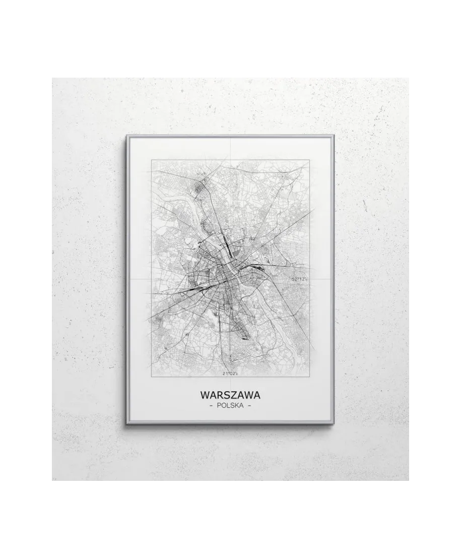 Artystyczna mapa na ścianę, zatytułowana Warszawa - Czarno biała mapa Ciekawy i oryginalny plakat na ścianę. Wyprodukowany na papierze o wysokiej gramaturze w cyfrowej jakości. Plakat wykonany przez polskiego producenta. Świetnie nadaje się do oprawienia w ramy lub antyramy. Specyfikacja papier satynowy 220g/m2 druk cyfrowy wymiary plakatu 50x70 cm