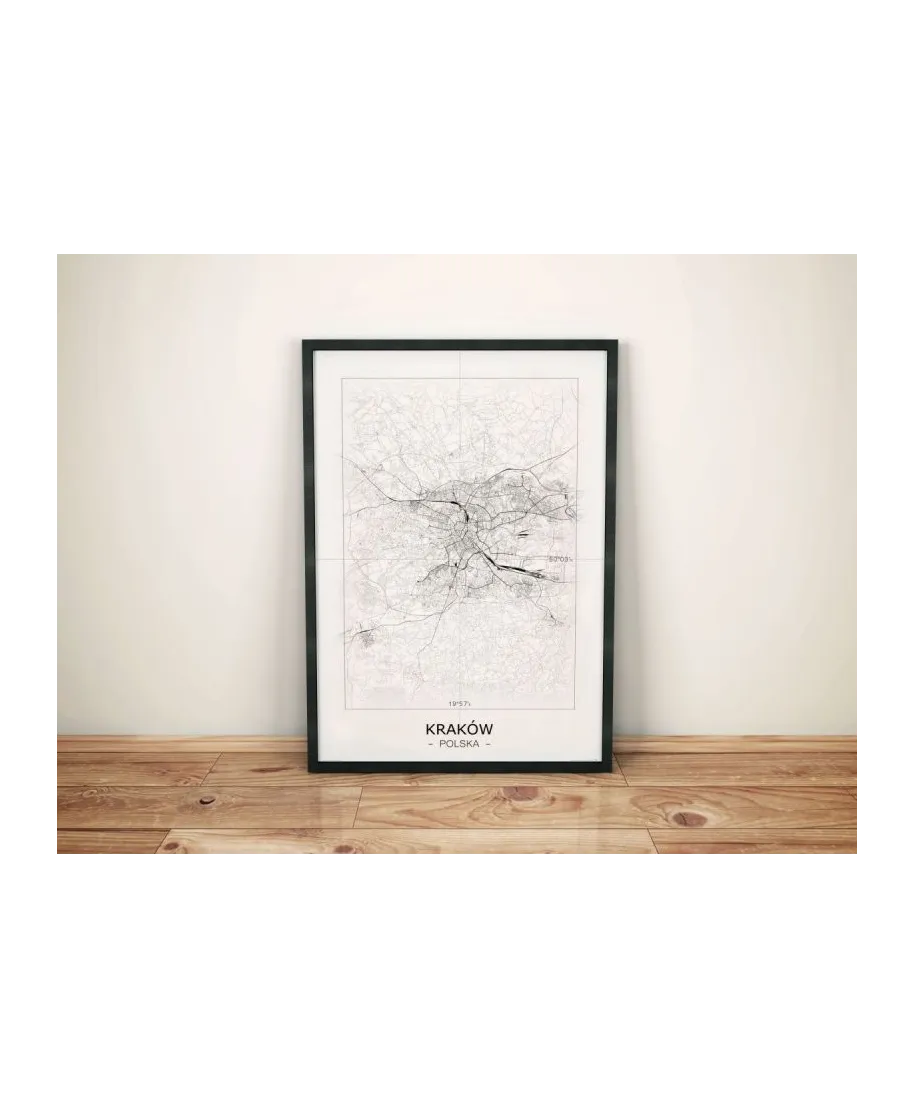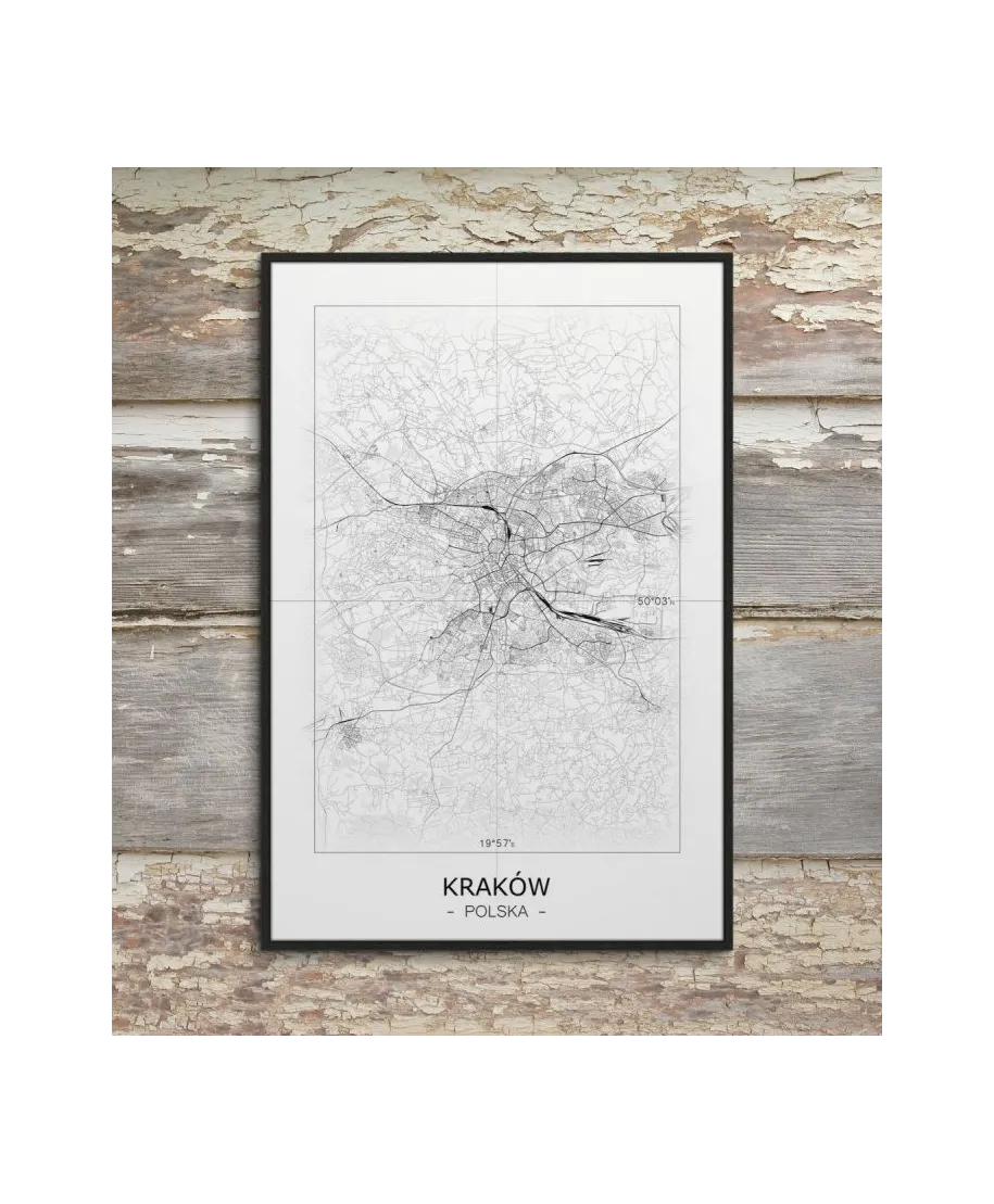 Artystyczna mapa na ścianę, zatytułowana Kraków - Czarno biała mapa Ciekawy i oryginalny plakat na ścianę. Wyprodukowany na papierze o wysokiej gramaturze w cyfrowej jakości. Plakat wykonany przez polskiego producenta. Świetnie nadaje się do oprawienia w ramy lub antyramy. Specyfikacja papier satynowy 220g/m2 druk cyfrowy wymiary plakatu 61x91,5 cm