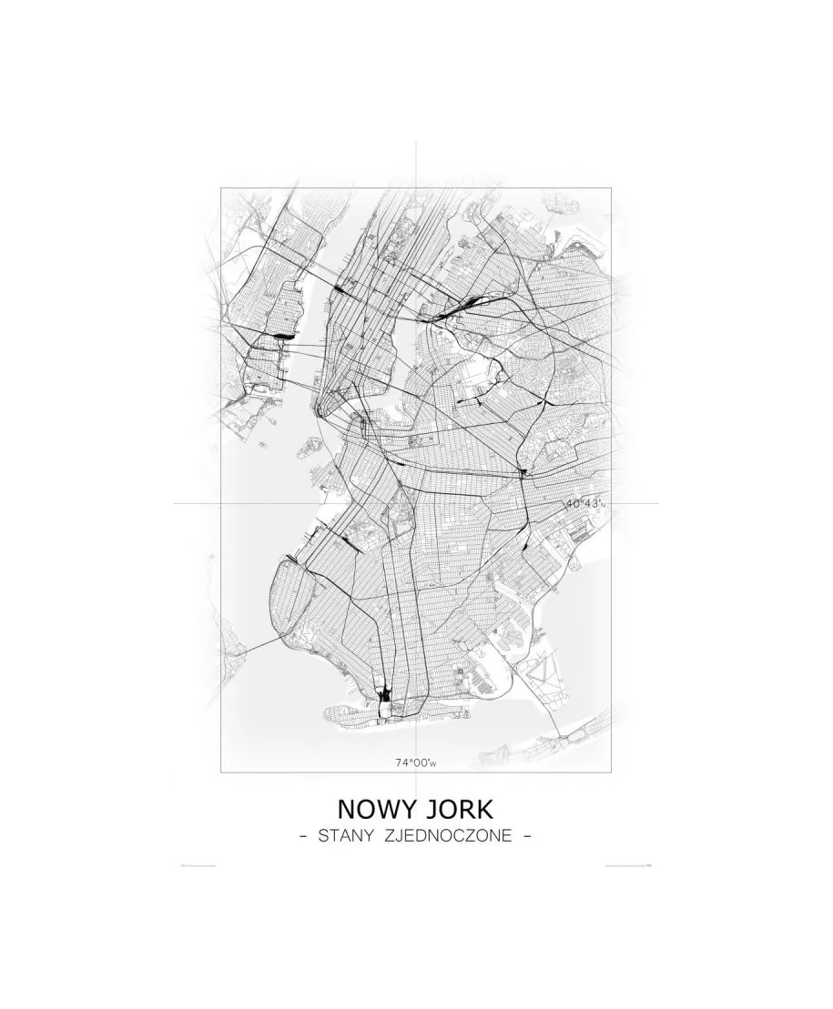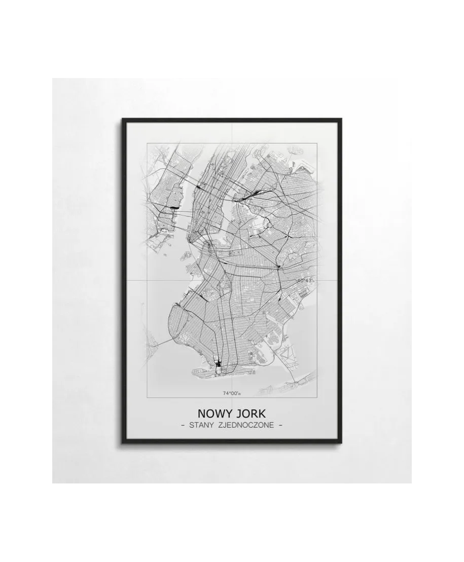 Artystyczna mapa na ścianę, zatytułowana Nowy Jork - Czarno biała mapa Ciekawy i oryginalny plakat na ścianę. Wyprodukowany na papierze o wysokiej gramaturze w cyfrowej jakości. Plakat wykonany przez polskiego producenta. Świetnie nadaje się do oprawienia w ramy lub antyramy. Specyfikacja papier satynowy 220g/m2 druk cyfrowy wymiary plakatu 61x91,5 cm