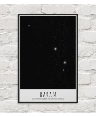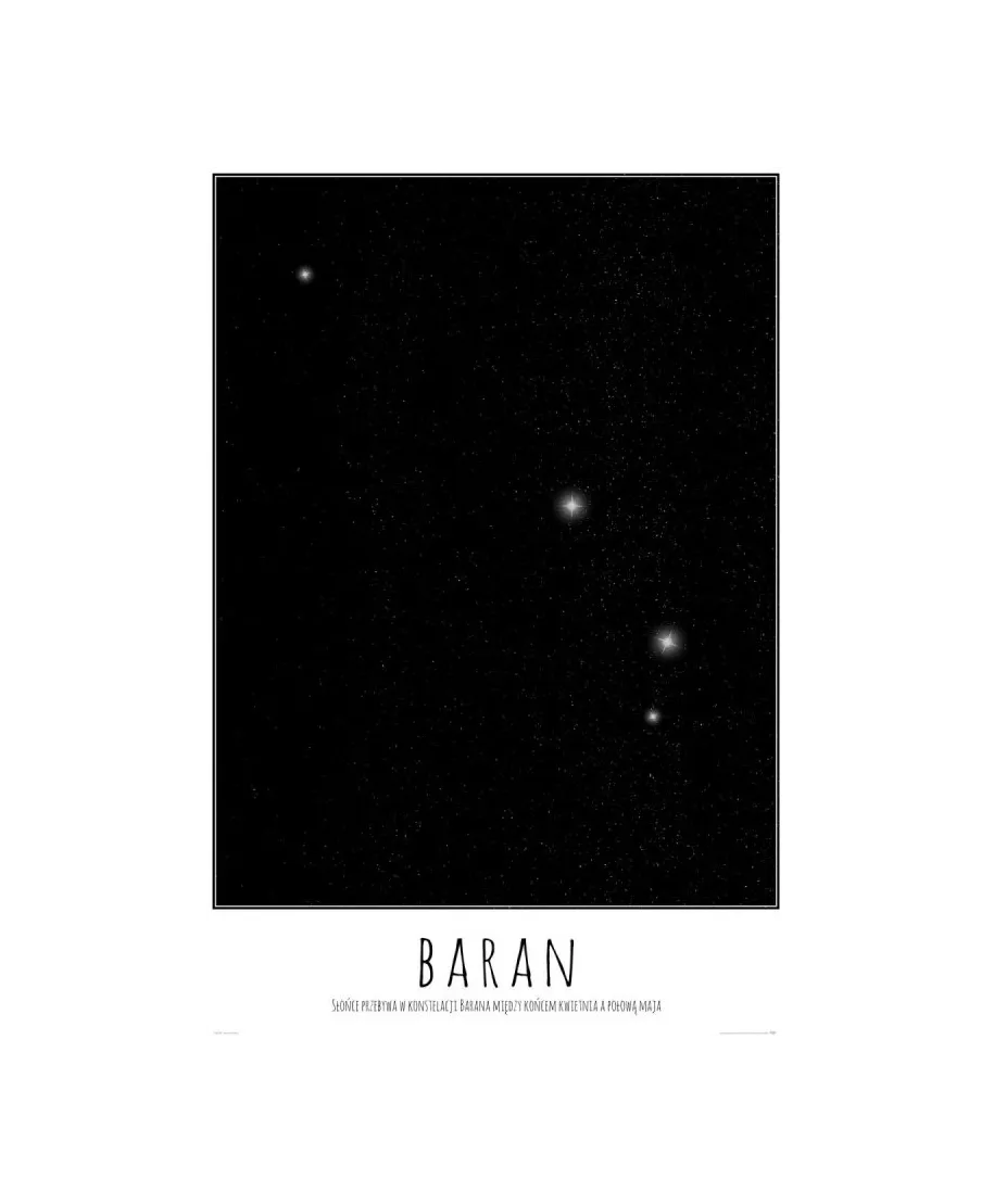 Plakat z mapą na ścianę, zatytułowany Baran konstelacja z opisem Ciekawy i oryginalny plakat na ścianę. Wyprodukowany na papierze o wysokiej gramaturze w cyfrowej jakości. Plakat wykonany przez polskiego producenta. Świetnie nadaje się do oprawienia w ramy lub antyramy. Specyfikacja papier satynowy 220g/m2 druk cyfrowy wymiary plakatu 61x91,5 cm
