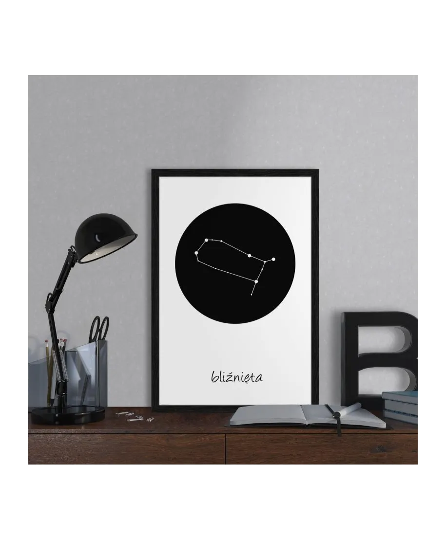 Plakat z mapą na ścianę, zatytułowany Bliźnięta konstelacja w kole Ciekawy i oryginalny plakat na ścianę. Wyprodukowany na papierze o wysokiej gramaturze w cyfrowej jakości. Plakat wykonany przez polskiego producenta. Świetnie nadaje się do oprawienia w ramy lub antyramy. Specyfikacja papier satynowy 220g/m2 druk cyfrowy wymiary plakatu 61x91,5 cm