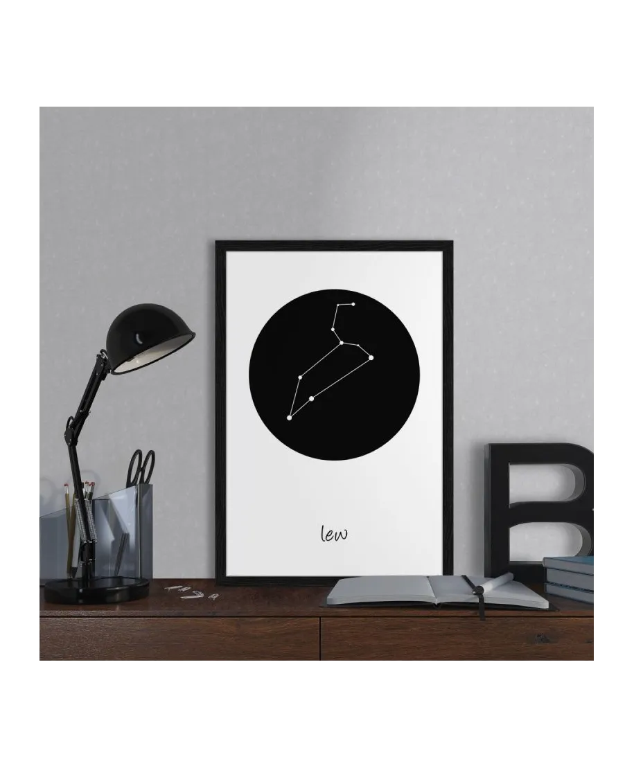 Plakat z mapą na ścianę, zatytułowany Lew konstelacja w kole Ciekawy i oryginalny plakat na ścianę. Wyprodukowany na papierze o wysokiej gramaturze w cyfrowej jakości. Plakat wykonany przez polskiego producenta. Świetnie nadaje się do oprawienia w ramy lub antyramy. Specyfikacja papier satynowy 220g/m2 druk cyfrowy wymiary plakatu 61x91,5 cm