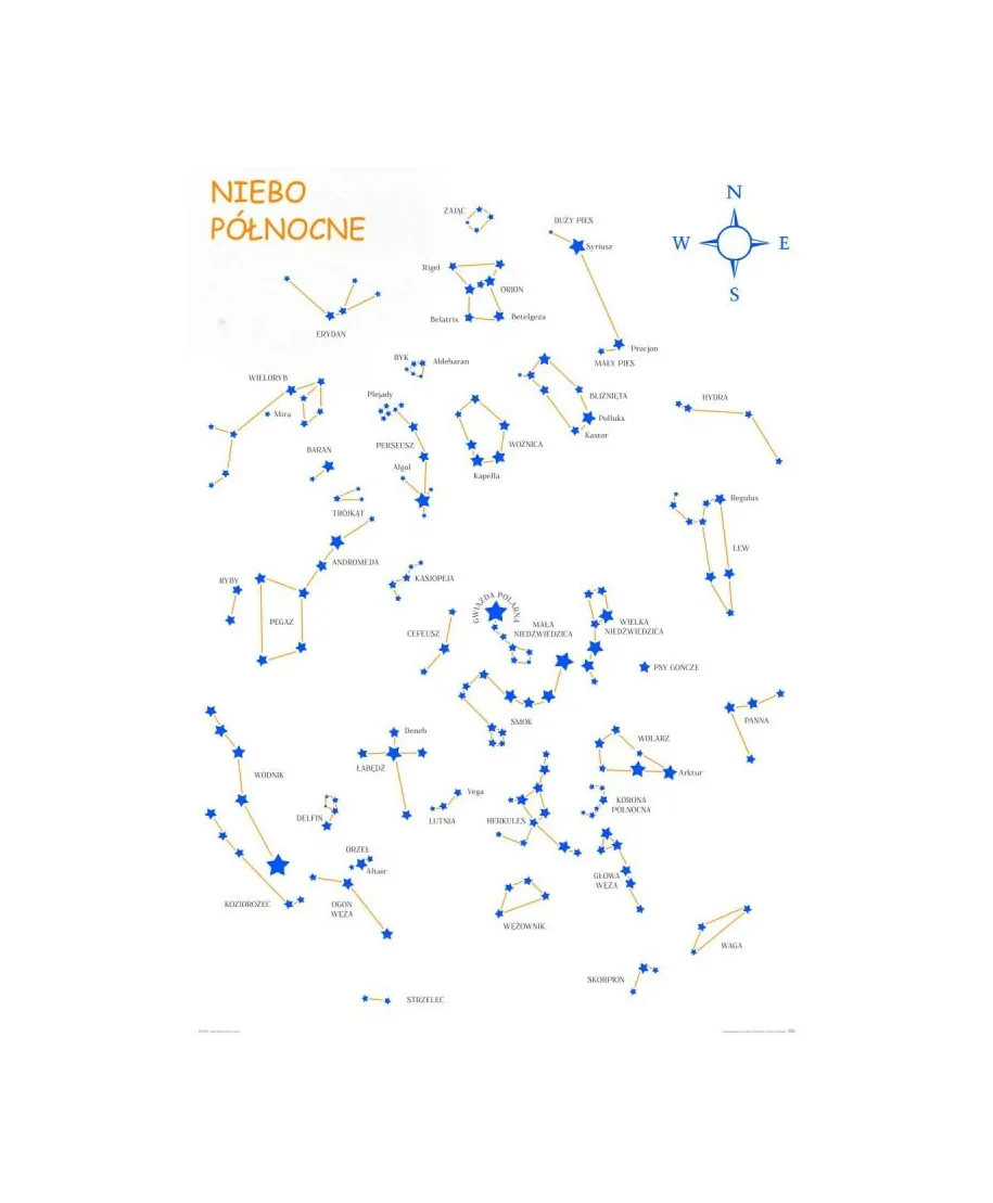 Plakat z mapą na ścianę, zatytułowany Niebo Północne białe Ciekawy i oryginalny plakat na ścianę. Wyprodukowany na papierze o wysokiej gramaturze w cyfrowej jakości. Plakat wykonany przez polskiego producenta. Świetnie nadaje się do oprawienia w ramy lub antyramy. Specyfikacja papier satynowy 220g/m2 druk cyfrowy wymiary plakatu 50x70 cm