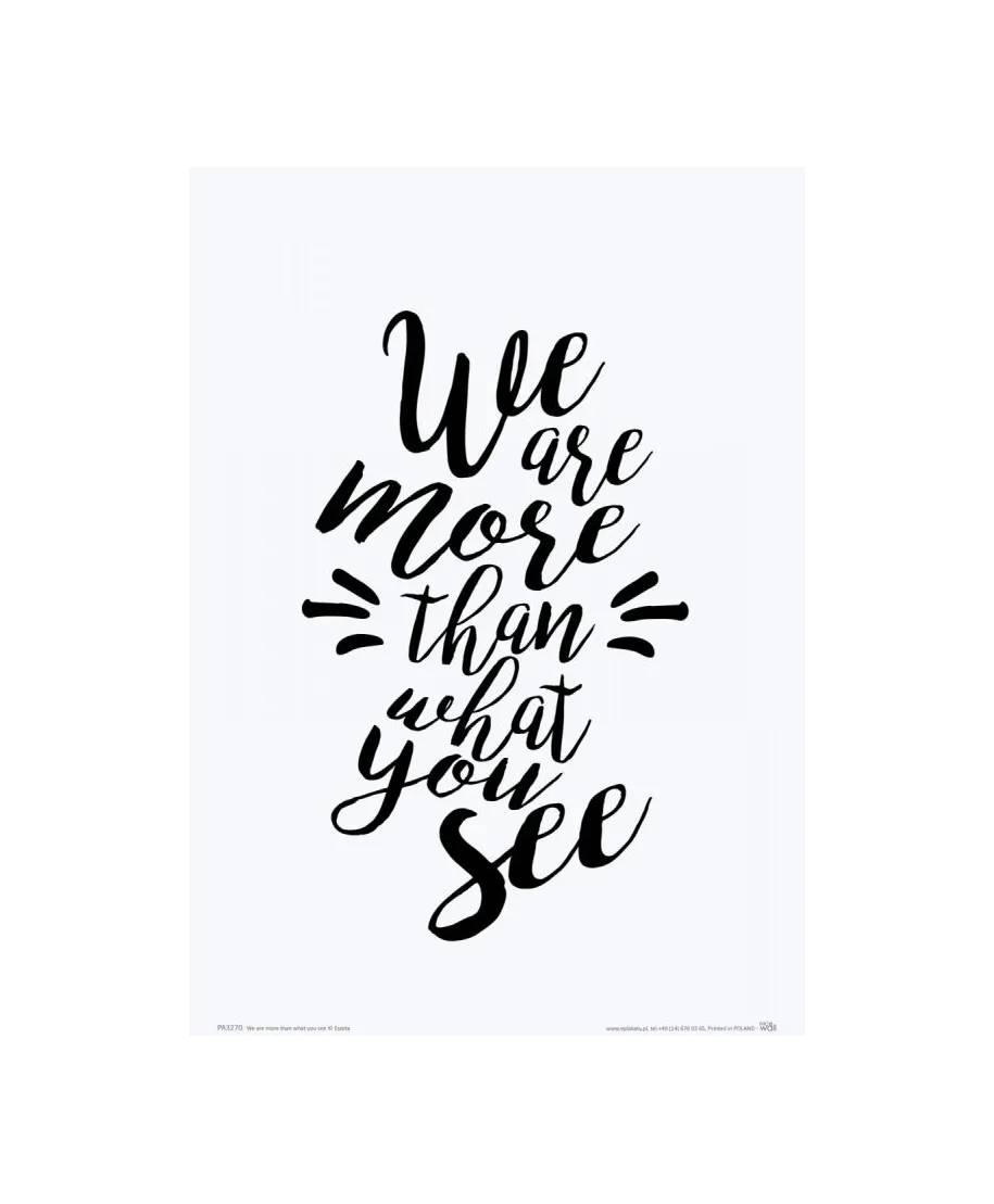 Plakat na ścianę, zatytułowany We are more than what you see Ciekawy i oryginalny plakat na ścianę. Wyprodukowany na papierze o wysokiej gramaturze w cyfrowej jakości. Plakat wykonany przez polskiego producenta. Świetnie nadaje się do oprawienia w ramy lub antyramy. Specyfikacja papier satynowy 220g/m2 druk cyfrowy wymiary plakatu 21x29,7 cm