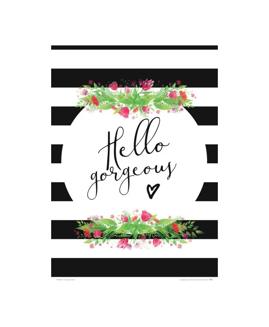 Plakat na ścianę, zatytułowany Hello gorgeous Ciekawy i oryginalny plakat na ścianę. Wyprodukowany na papierze o wysokiej gramaturze w cyfrowej jakości. Plakat wykonany przez polskiego producenta. Świetnie nadaje się do oprawienia w ramy lub antyramy. Specyfikacja papier satynowy 220g/m2 druk cyfrowy wymiary plakatu 29,7x42 cm
