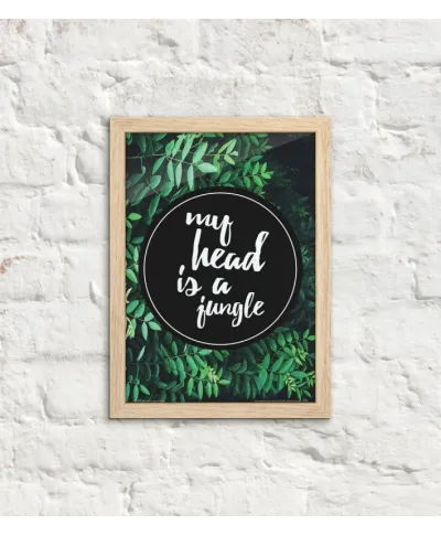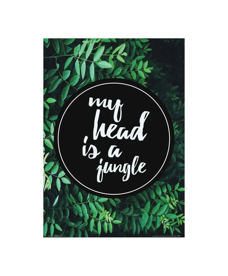 Plakat na ścianę, zatytułowany My head is a jungle Ciekawy i oryginalny plakat na ścianę. Wyprodukowany na papierze o wysokiej gramaturze w cyfrowej jakości. Plakat wykonany przez polskiego producenta. Świetnie nadaje się do oprawienia w ramy lub antyramy. Specyfikacja papier satynowy 220g/m2 druk cyfrowy wymiary plakatu 29,7x42 cm