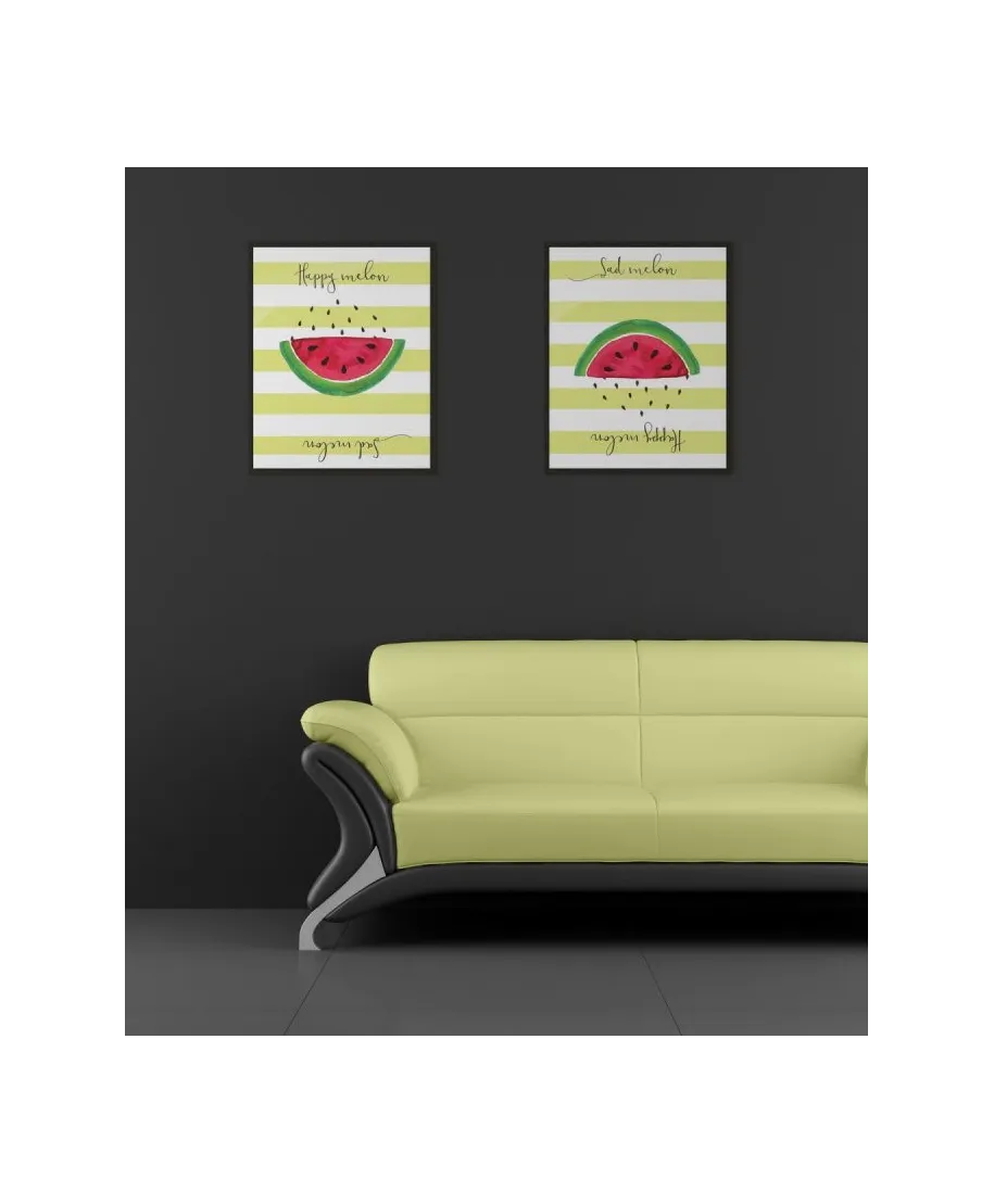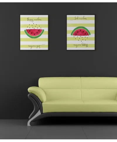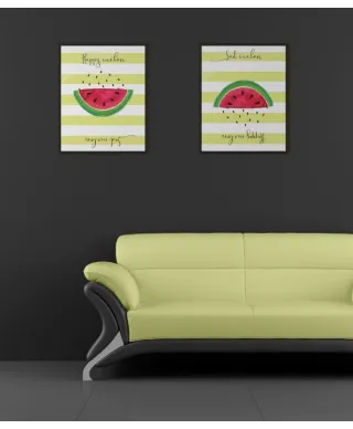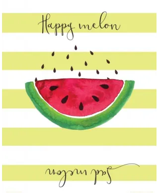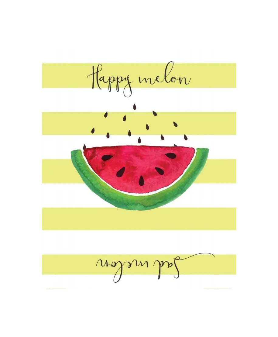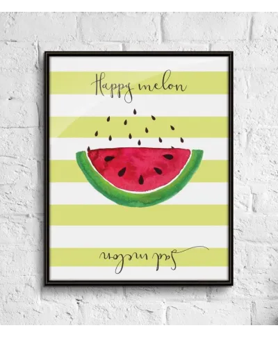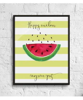Plakat na ścianę, zatytułowany Happy melon sad melon Ciekawy i oryginalny plakat na ścianę. Wyprodukowany na papierze o wysokiej gramaturze w cyfrowej jakości. Plakat wykonany przez polskiego producenta. Świetnie nadaje się do oprawienia w ramy lub antyramy. Specyfikacja papier satynowy 220g/m2 druk cyfrowy wymiary plakatu 40x50 cm