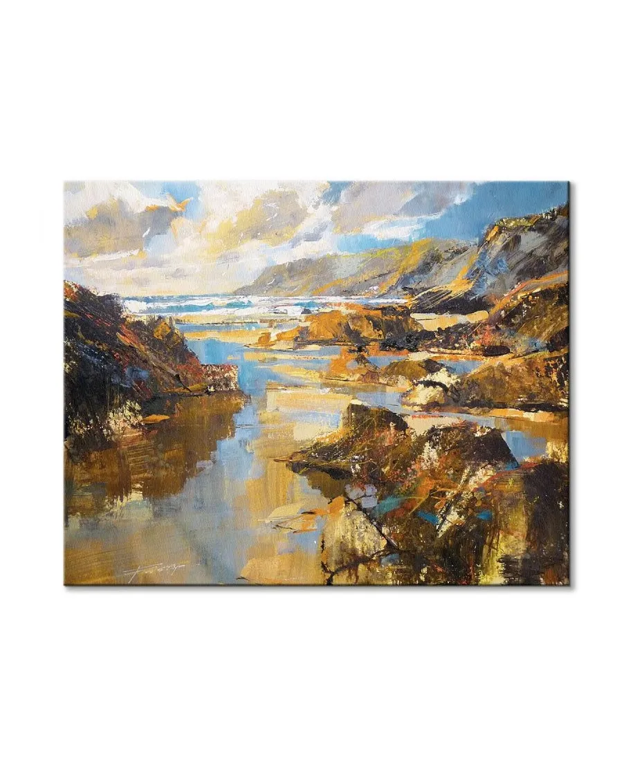 Waves And Evening Sun, North Cornwall - Obraz na płótnie naciągnięty na sosnowe krosna. Gotowy do zawieszenia na ścianę. Wykonany z najwyższą dbałością o detale. Obraz jest ostry a barwy nasycone. Ten egzemplarz posiada zadrukowane boki, nie trzeba go dodatkowo oprawiać. Płótno bawełniane na który został naniesiony obraz jest bardzo mocne i posiada ciekawą fakturę. Blejtrama wykonana jest natomiast z grubego drzewa sosnowego. Jest solidna, jej szerokość to 3,5 cm a grubość 2 cm. Kupując ten produkt masz pewność, że kupujesz z legalnego źródła i wspierasz artystów. Obraz jest oryginalny i posiada licencję. Lubisz wyróżniać się ciekawymi, ekskluzywnymi dekoracjami na ścianę ? Ten obraz jest idealny dla Ciebie. Nikt nie przejdzie obojętnie obok niego, jest po prostu piękny. Dane techniczne Płótno bawełniane 300g/m2 Sosnowe krosna o grubości 2 cm i szerokości 3,5 cm Obraz zadrukowany cyfrowo Wymiary obrazu 40x50 cm
