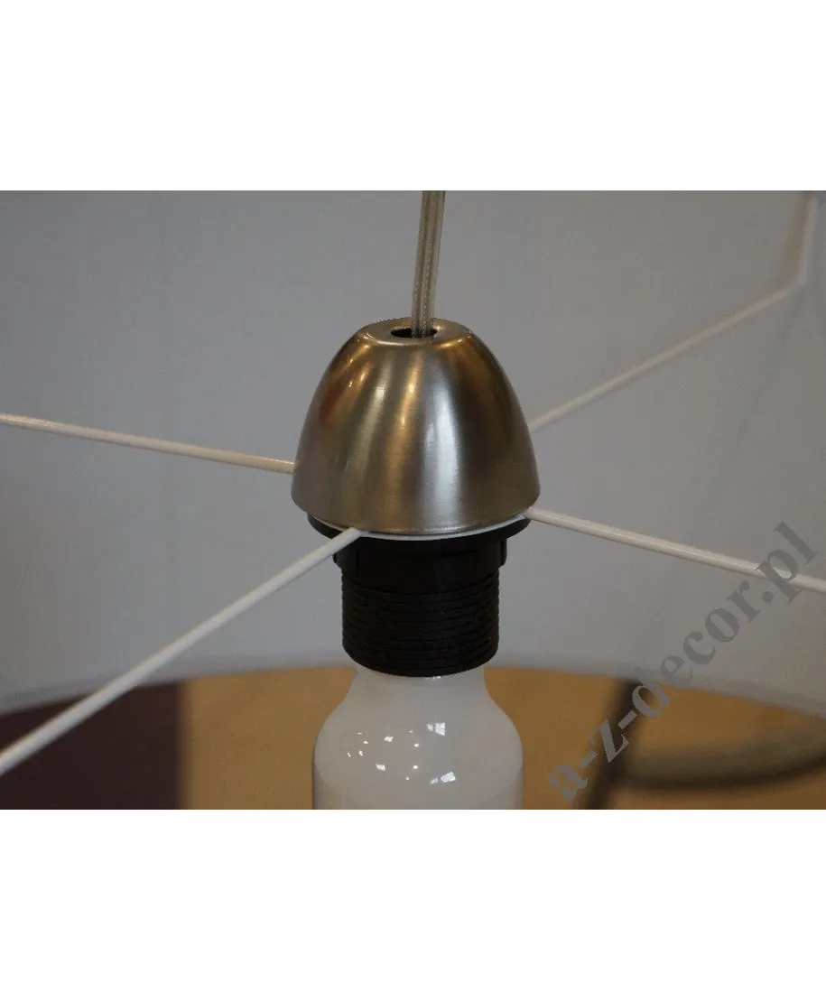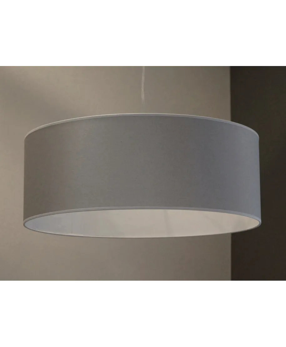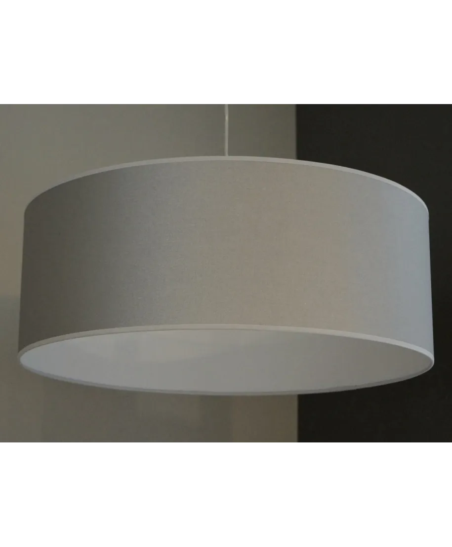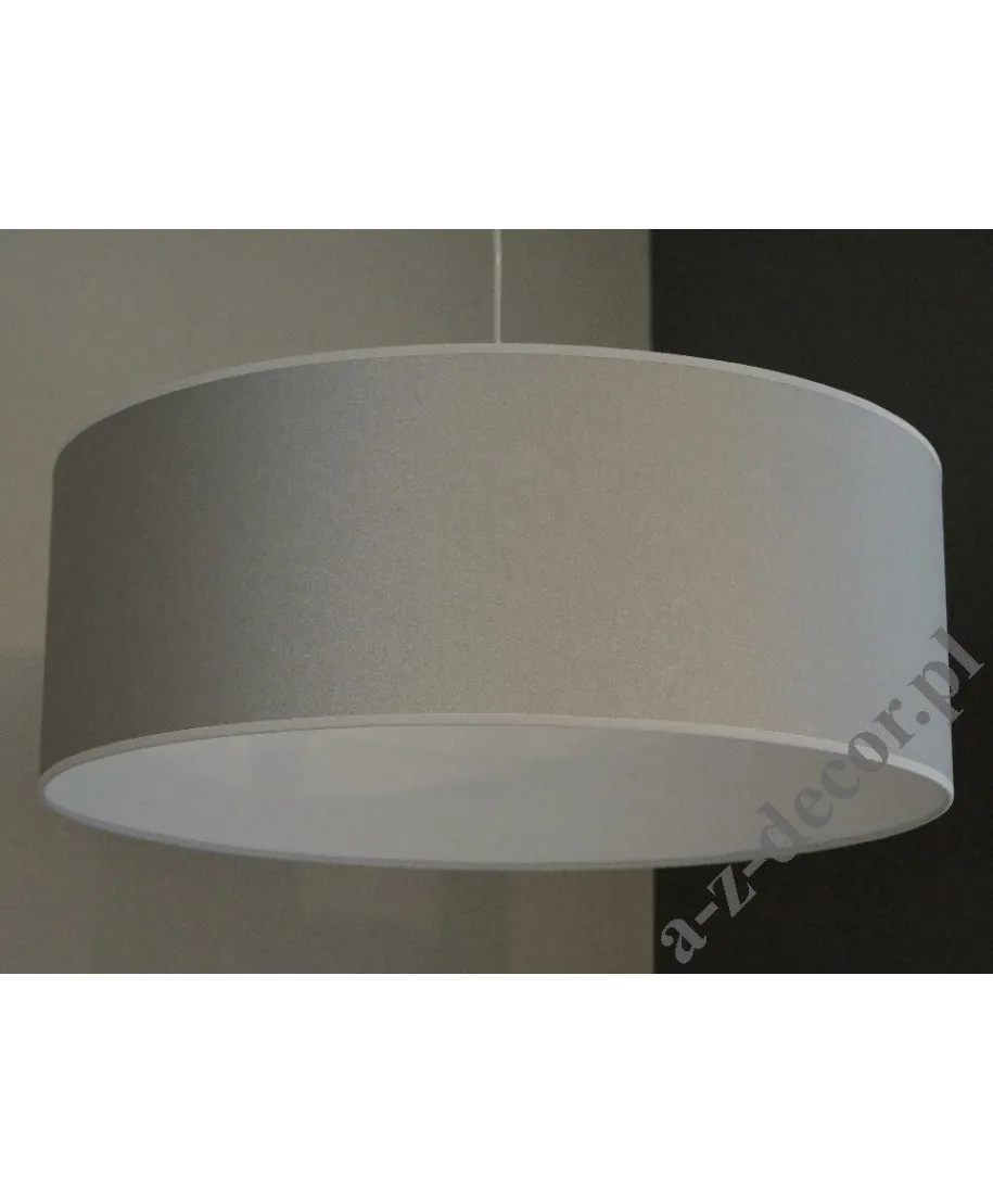 - Lampa wisząca o wymiarach abażuru 55x20cm i oprawce E27 | Max: 60W | 230V. Abażur srebrno szary Coto Argent z białym podbiciem. Kabel przezroczysty ok.80cm ze srebrną, matową kopułką. W razie potrzeby abażur bardzo łatwo zdemontować.