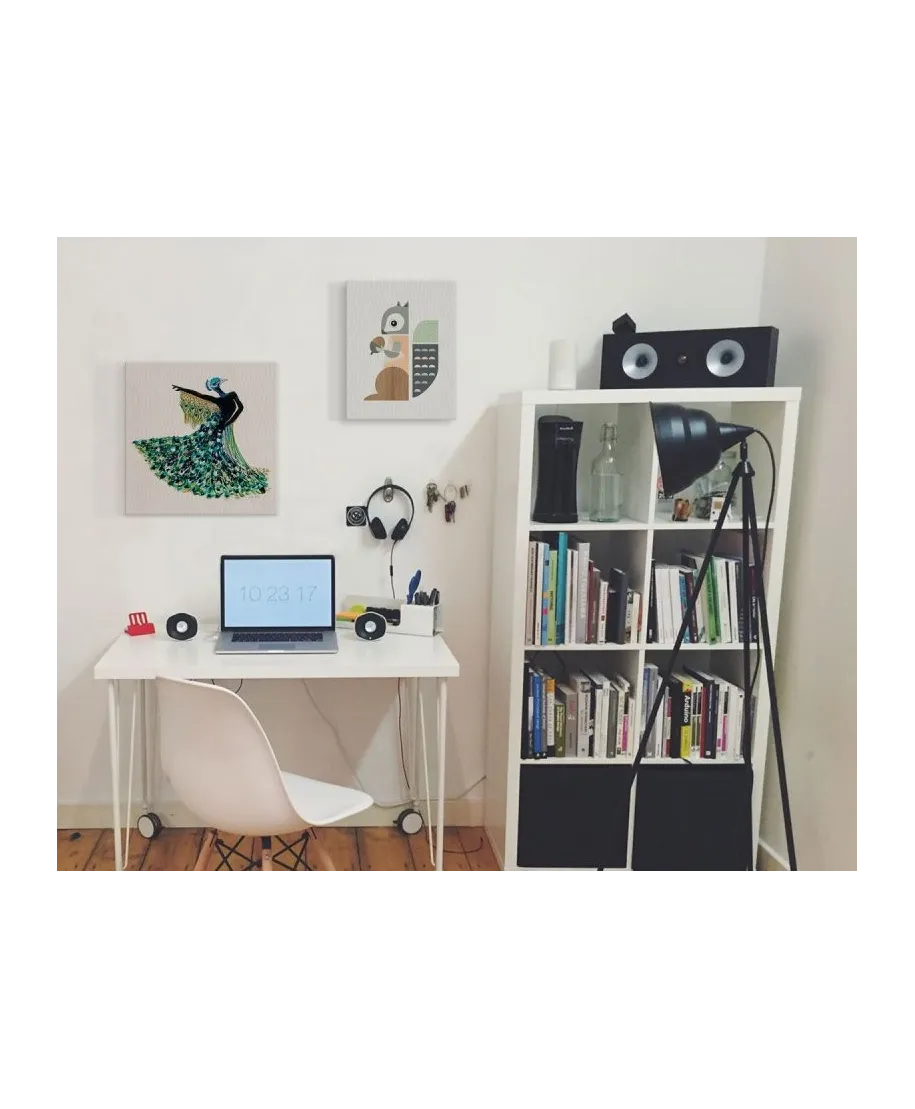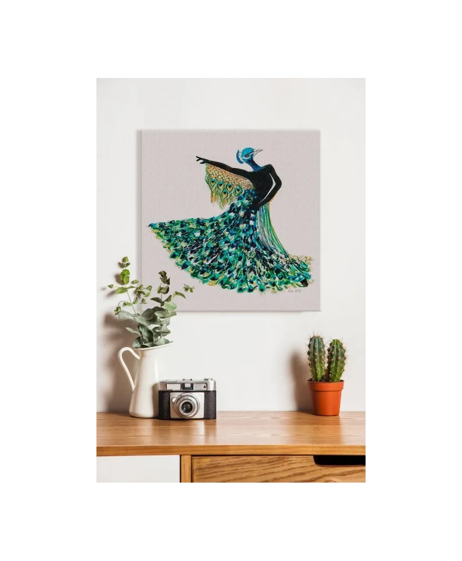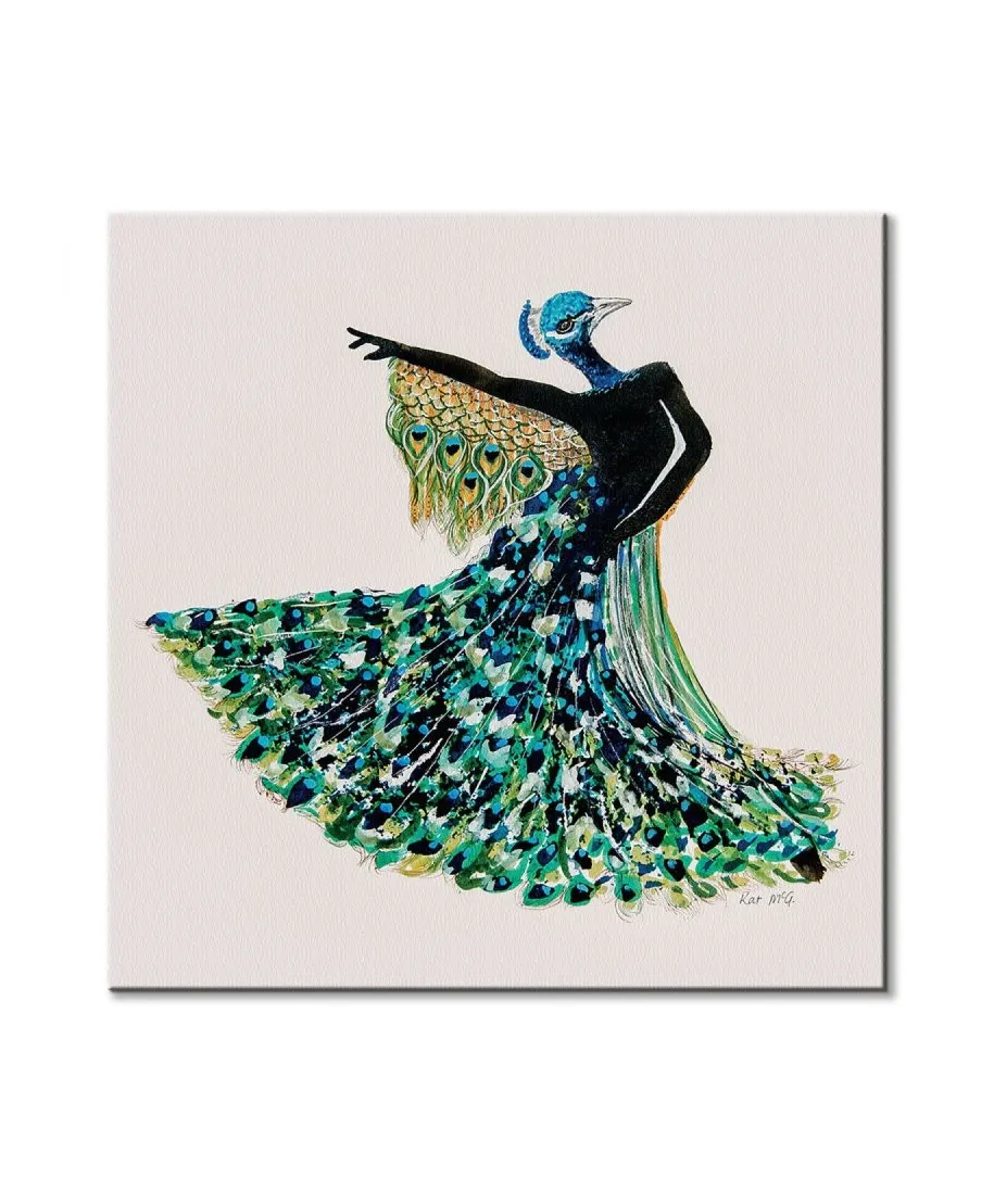 Peacock Dancer obraz na płótnie naciągnięty na sosnowe krosna. Gotowy do zawieszenia na ścianę. Wykonany z najwyższą dbałością o detale. Obraz jest ostry a barwy nasycone. Ten egzemplarz posiada zadrukowane boki, nie trzeba go dodatkowo oprawiać. Płótno bawełniane na który został naniesiony obraz jest bardzo mocne i posiada ciekawą fakturę. Blejtrama wykonana jest natomiast z grubego drzewa sosnowego. Jest solidna, jej szerokość to 3,5 cm a grubość 2 cm. Kupując ten produkt masz pewność, że kupujesz z legalnego źródła i wspierasz artystów. Obraz jest oryginalny i posiada licencję. Lubisz wyróżniać się ciekawymi, ekskluzywnymi dekoracjami na ścianę ? Ten obraz jest idealny dla Ciebie. Nikt nie przejdzie obojętnie obok niego, jest po prostu piękny. Dane techniczne Płótno bawełniane 300g/m2 Sosnowe krosna o grubości 2 cm i szerokości 3,5 cm Obraz zadrukowany cyfrowo Wymiary obrazu 60x60 cm