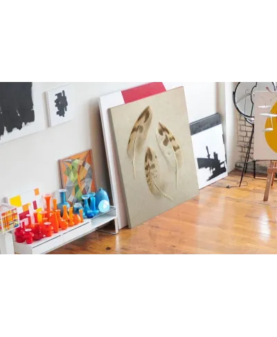 Mallard Feather Trio obraz na płótnie naciągnięty na sosnowe krosna. Gotowy do zawieszenia na ścianę. Wykonany z najwyższą dbałością o detale. Obraz jest ostry a barwy nasycone. Ten egzemplarz posiada zadrukowane boki, nie trzeba go dodatkowo oprawiać. Płótno bawełniane na który został naniesiony obraz jest bardzo mocne i posiada ciekawą fakturę. Blejtrama wykonana jest natomiast z grubego drzewa sosnowego. Jest solidna, jej szerokość to 3,5 cm a grubość 2 cm. Kupując ten produkt masz pewność, że kupujesz z legalnego źródła i wspierasz artystów. Obraz jest oryginalny i posiada licencję. Lubisz wyróżniać się ciekawymi, ekskluzywnymi dekoracjami na ścianę ? Ten obraz jest idealny dla Ciebie. Nikt nie przejdzie obojętnie obok niego, jest po prostu piękny. Dane techniczne Płótno bawełniane 300g/m2 Sosnowe krosna o grubości 2 cm i szerokości 3,5 cm Obraz zadrukowany cyfrowo Wymiary obrazu 60x80 cm