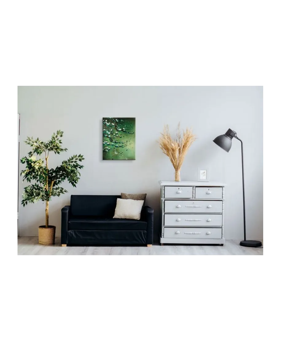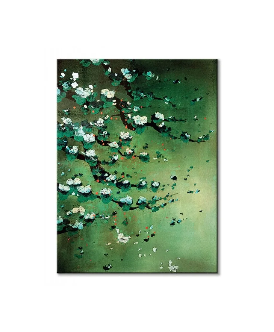 Blossoms on Jade - obraz na płótnie Naciągnięty na sosnowe krosna. Gotowy do zawieszenia na ścianę. Wykonany z najwyższą dbałością o detale. Obraz jest ostry a barwy nasycone. Ten egzemplarz posiada zadrukowane boki, nie trzeba go dodatkowo oprawiać. Płótno bawełniane na który został naniesiony obraz jest bardzo mocne i posiada ciekawą fakturę. Blejtrama wykonana jest natomiast z grubego drzewa sosnowego. Jest solidna, jej szerokość to 3,5 cm a grubość 2 cm. Kupując ten produkt masz pewność, że kupujesz z legalnego źródła i wspierasz artystów. Obraz jest oryginalny i posiada licencję. Lubisz wyróżniać się ciekawymi, ekskluzywnymi dekoracjami na ścianę? Ten obraz jest idealny dla Ciebie. Nikt nie przejdzie obojętnie obok niego, jest po prostu piękny. Dane techniczne Płótno bawełniane 300g/m2 Sosnowe krosna o grubości 2 cm i szerokości 3,5 cm Obraz zadrukowany cyfrowo Wymiary obrazu 30x40 cm