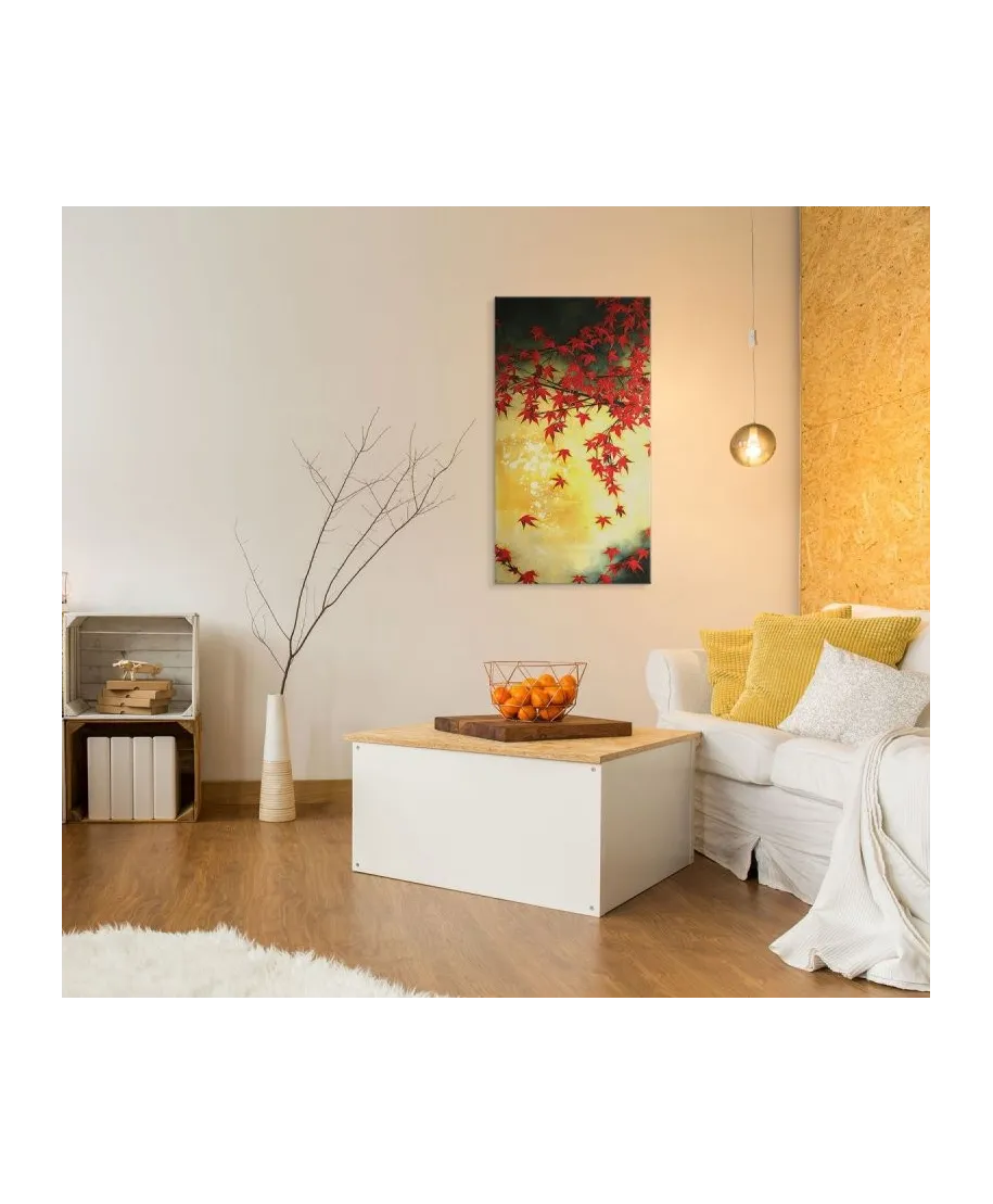 Japanese Maple - obraz na płótnie Naciągnięty na sosnowe krosna. Gotowy do zawieszenia na ścianę. Wykonany z najwyższą dbałością o detale. Obraz jest ostry a barwy nasycone. Ten egzemplarz posiada zadrukowane boki, nie trzeba go dodatkowo oprawiać. Płótno bawełniane na który został naniesiony obraz jest bardzo mocne i posiada ciekawą fakturę. Blejtrama wykonana jest natomiast z grubego drzewa sosnowego. Jest solidna, jej szerokość to 3,5 cm a grubość 2 cm. Kupując ten produkt masz pewność, że kupujesz z legalnego źródła i wspierasz artystów. Obraz jest oryginalny i posiada licencję. Lubisz wyróżniać się ciekawymi, ekskluzywnymi dekoracjami na ścianę? Ten obraz jest idealny dla Ciebie. Nikt nie przejdzie obojętnie obok niego, jest po prostu piękny. Dane techniczne Płótno bawełniane 300g/m2 Sosnowe krosna o grubości 2 cm i szerokości 3,5 cm Obraz zadrukowany cyfrowo Wymiary obrazu 50x100 cm