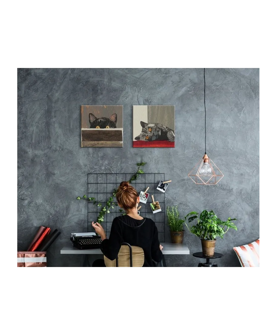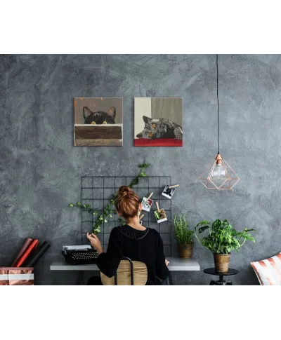 Paws - obraz na płótnie Naciągnięty na sosnowe krosna. Gotowy do zawieszenia na ścianę. Wykonany z najwyższą dbałością o detale. Obraz jest ostry a barwy nasycone. Ten egzemplarz posiada zadrukowane boki, nie trzeba go dodatkowo oprawiać. Płótno bawełniane na który został naniesiony obraz jest bardzo mocne i posiada ciekawą fakturę. Blejtrama wykonana jest natomiast z grubego drzewa sosnowego. Jest solidna, jej szerokość to 3,5 cm a grubość 2 cm. Kupując ten produkt masz pewność, że kupujesz z legalnego źródła i wspierasz artystów. Obraz jest oryginalny i posiada licencję. Lubisz wyróżniać się ciekawymi, ekskluzywnymi dekoracjami na ścianę? Ten obraz jest idealny dla Ciebie. Nikt nie przejdzie obojętnie obok niego, jest po prostu piękny. Dane techniczne Płótno bawełniane 300g/m2 Sosnowe krosna o grubości 2 cm i szerokości 3,5 cm Obraz zadrukowany cyfrowo Wymiary obrazu 40x40 cm