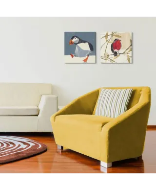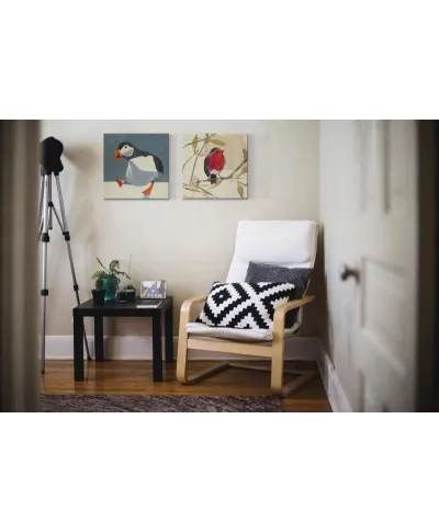 Robin - obraz na płótnie Naciągnięty na sosnowe krosna. Gotowy do zawieszenia na ścianę. Wykonany z najwyższą dbałością o detale. Obraz jest ostry a barwy nasycone. Ten egzemplarz posiada zadrukowane boki, nie trzeba go dodatkowo oprawiać. Płótno bawełniane na który został naniesiony obraz jest bardzo mocne i posiada ciekawą fakturę. Blejtrama wykonana jest natomiast z grubego drzewa sosnowego. Jest solidna, jej szerokość to 3,5 cm a grubość 2 cm. Kupując ten produkt masz pewność, że kupujesz z legalnego źródła i wspierasz artystów. Obraz jest oryginalny i posiada licencję. Lubisz wyróżniać się ciekawymi, ekskluzywnymi dekoracjami na ścianę? Ten obraz jest idealny dla Ciebie. Nikt nie przejdzie obojętnie obok niego, jest po prostu piękny. Dane techniczne Płótno bawełniane 300g/m2 Sosnowe krosna o grubości 2 cm i szerokości 3,5 cm Obraz zadrukowany cyfrowo Wymiary obrazu 40x40 cm