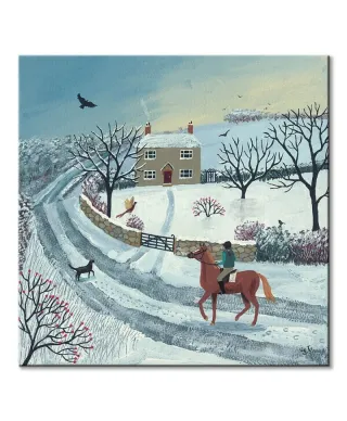 Winter Ride - obraz na płótnie Naciągnięty na sosnowe krosna. Gotowy do zawieszenia na ścianę. Wykonany z najwyższą dbałością o detale. Obraz jest ostry a barwy nasycone. Ten egzemplarz posiada zadrukowane boki, nie trzeba go dodatkowo oprawiać. Płótno bawełniane na który został naniesiony obraz jest bardzo mocne i posiada ciekawą fakturę. Blejtrama wykonana jest natomiast z grubego drzewa sosnowego. Jest solidna, jej szerokość to 3,5 cm a grubość 2 cm. Kupując ten produkt masz pewność, że kupujesz z legalnego źródła i wspierasz artystów. Obraz jest oryginalny i posiada licencję. Lubisz wyróżniać się ciekawymi, ekskluzywnymi dekoracjami na ścianę? Ten obraz jest idealny dla Ciebie. Nikt nie przejdzie obojętnie obok niego, jest po prostu piękny. Dane techniczne Płótno bawełniane 300g/m2 Sosnowe krosna o grubości 2 cm i szerokości 3,5 cm Obraz zadrukowany cyfrowo Wymiary obrazu 40x40 cm