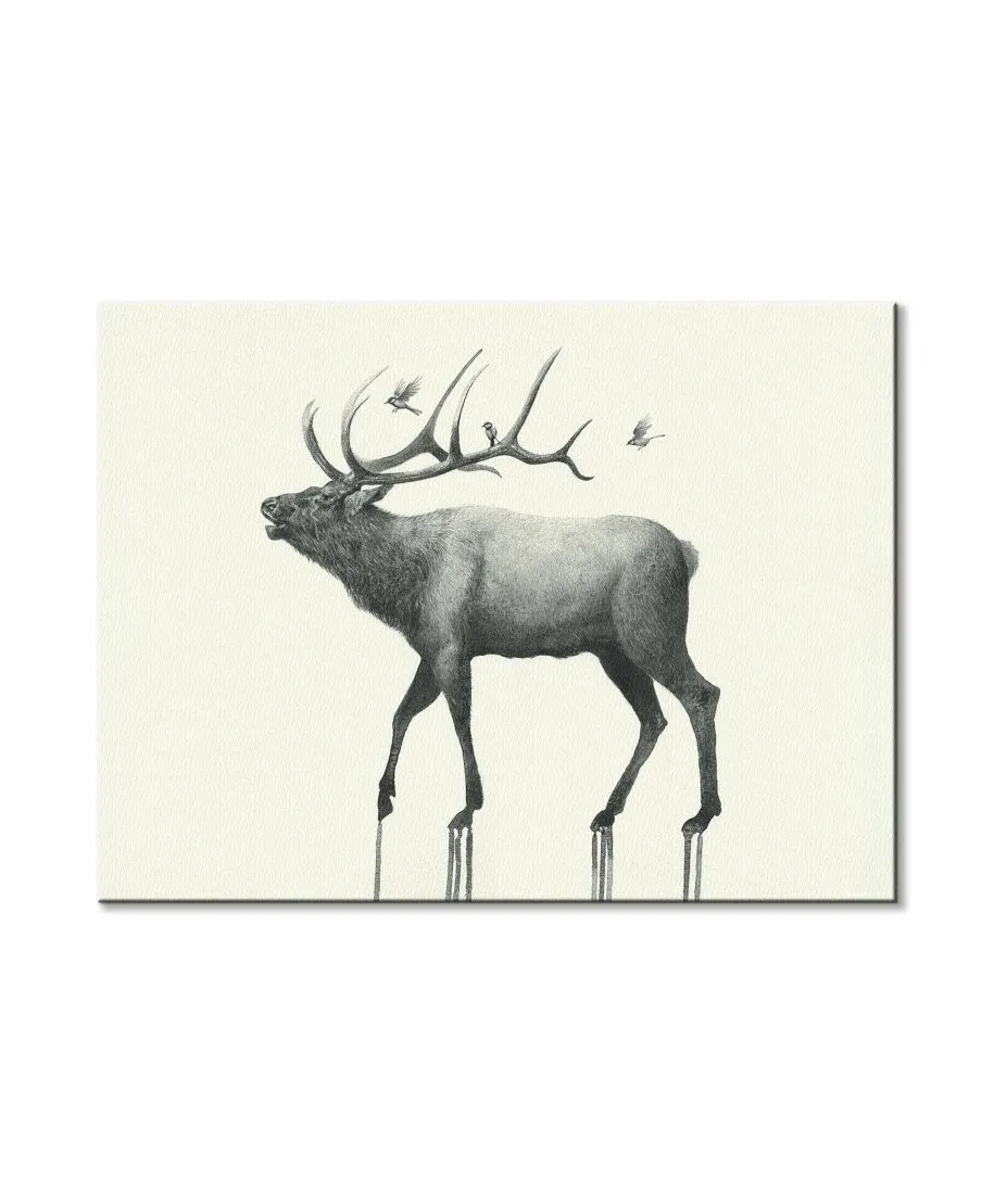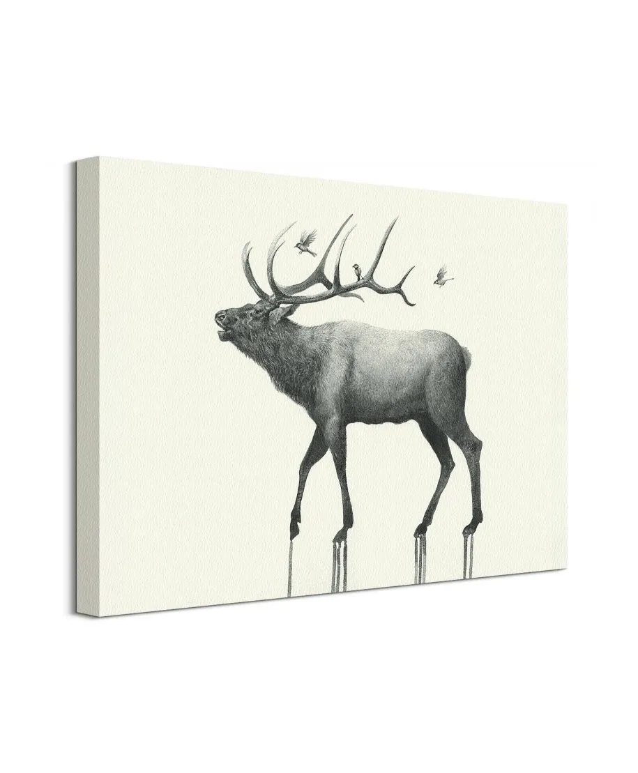 Calling Elk - obraz na płótnie Naciągnięty na sosnowe krosna. Gotowy do zawieszenia na ścianę. Wykonany z najwyższą dbałością o detale. Obraz jest ostry a barwy nasycone. Ten egzemplarz posiada zadrukowane boki, nie trzeba go dodatkowo oprawiać. Płótno bawełniane na który został naniesiony obraz jest bardzo mocne i posiada ciekawą fakturę. Blejtrama wykonana jest natomiast z grubego drzewa sosnowego. Jest solidna, jej szerokość to 3,5 cm a grubość 2 cm. Kupując ten produkt masz pewność, że kupujesz z legalnego źródła i wspierasz artystów. Obraz jest oryginalny i posiada licencję. Lubisz wyróżniać się ciekawymi, ekskluzywnymi dekoracjami na ścianę? Ten obraz jest idealny dla Ciebie. Nikt nie przejdzie obojętnie obok niego, jest po prostu piękny. Dane techniczne Płótno bawełniane 300g/m2 Sosnowe krosna o grubości 2 cm i szerokości 3,5 cm Obraz zadrukowany cyfrowo Wymiary obrazu 40x30 cm