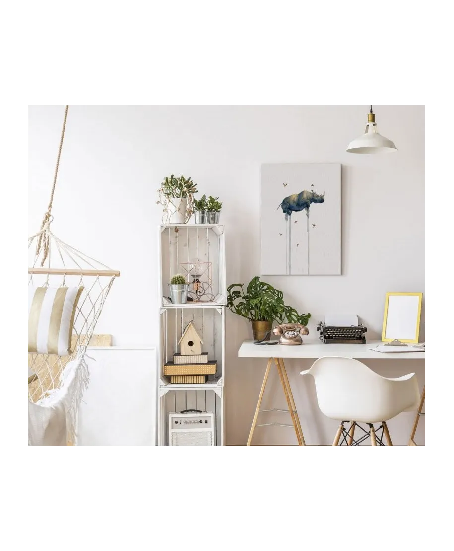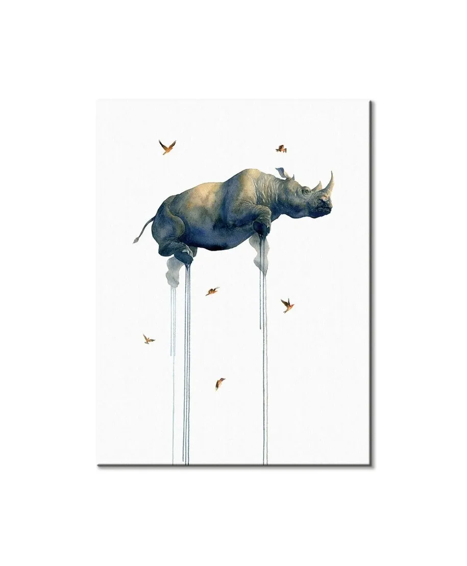 Journey 2 Rhino - obraz na płótnie Naciągnięty na sosnowe krosna. Gotowy do zawieszenia na ścianę. Wykonany z najwyższą dbałością o detale. Obraz jest ostry a barwy nasycone. Ten egzemplarz posiada zadrukowane boki, nie trzeba go dodatkowo oprawiać. Płótno bawełniane na który został naniesiony obraz jest bardzo mocne i posiada ciekawą fakturę. Blejtrama wykonana jest natomiast z grubego drzewa sosnowego. Jest solidna, jej szerokość to 3,5 cm a grubość 2 cm. Kupując ten produkt masz pewność, że kupujesz z legalnego źródła i wspierasz artystów. Obraz jest oryginalny i posiada licencję. Lubisz wyróżniać się ciekawymi, ekskluzywnymi dekoracjami na ścianę? Ten obraz jest idealny dla Ciebie. Nikt nie przejdzie obojętnie obok niego, jest po prostu piękny. Dane techniczne Płótno bawełniane 300g/m2 Sosnowe krosna o grubości 2 cm i szerokości 3,5 cm Obraz zadrukowany cyfrowo Wymiary obrazu 30x40 cm