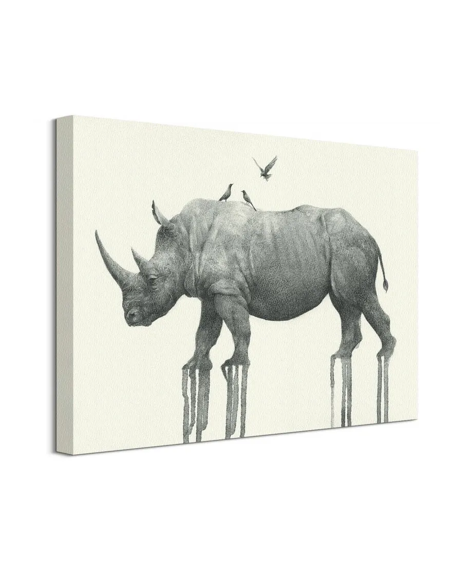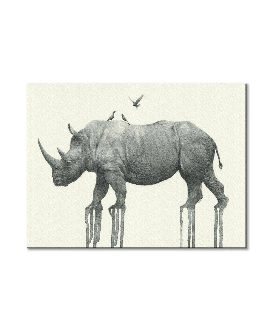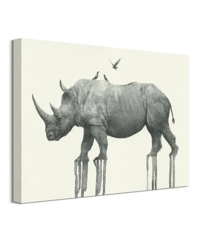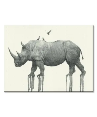 Majestic Rhinoceros - obraz na płótnie Naciągnięty na sosnowe krosna. Gotowy do zawieszenia na ścianę. Wykonany z najwyższą dbałością o detale. Obraz jest ostry a barwy nasycone. Ten egzemplarz posiada zadrukowane boki, nie trzeba go dodatkowo oprawiać. Płótno bawełniane na który został naniesiony obraz jest bardzo mocne i posiada ciekawą fakturę. Blejtrama wykonana jest natomiast z grubego drzewa sosnowego. Jest solidna, jej szerokość to 3,5 cm a grubość 2 cm. Kupując ten produkt masz pewność, że kupujesz z legalnego źródła i wspierasz artystów. Obraz jest oryginalny i posiada licencję. Lubisz wyróżniać się ciekawymi, ekskluzywnymi dekoracjami na ścianę? Ten obraz jest idealny dla Ciebie. Nikt nie przejdzie obojętnie obok niego, jest po prostu piękny. Dane techniczne Płótno bawełniane 300g/m2 Sosnowe krosna o grubości 2 cm i szerokości 3,5 cm Obraz zadrukowany cyfrowo Wymiary obrazu 40x30 cm