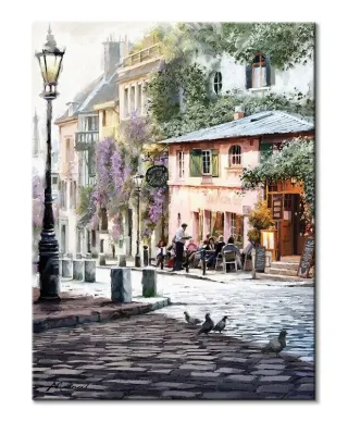 Sunshine Caf - obraz na płótnie Naciągnięty na sosnowe krosna. Gotowy do zawieszenia na ścianę. Wykonany z najwyższą dbałością o detale. Obraz jest ostry a barwy nasycone. Ten egzemplarz posiada zadrukowane boki, nie trzeba go dodatkowo oprawiać. Płótno bawełniane na który został naniesiony obraz jest bardzo mocne i posiada ciekawą fakturę. Blejtrama wykonana jest natomiast z grubego drzewa sosnowego. Jest solidna, jej szerokość to 3,5 cm a grubość 2 cm. Kupując ten produkt masz pewność, że kupujesz z legalnego źródła i wspierasz artystów. Obraz jest oryginalny i posiada licencję. Lubisz wyróżniać się ciekawymi, ekskluzywnymi dekoracjami na ścianę? Ten obraz jest idealny dla Ciebie. Nikt nie przejdzie obojętnie obok niego, jest po prostu piękny. Dane techniczne Płótno bawełniane 300g/m2 Sosnowe krosna o grubości 2 cm i szerokości 3,5 cm Obraz zadrukowany cyfrowo Wymiary obrazu 30x40 cm