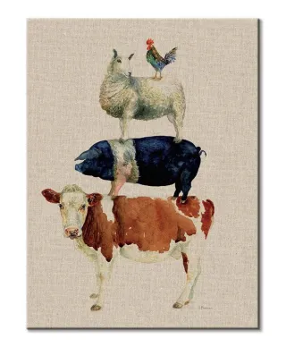 Farmyard Fun - obraz na płótnie Naciągnięty na sosnowe krosna. Gotowy do zawieszenia na ścianę. Wykonany z najwyższą dbałością o detale. Obraz jest ostry a barwy nasycone. Ten egzemplarz posiada zadrukowane boki, nie trzeba go dodatkowo oprawiać. Płótno bawełniane na który został naniesiony obraz jest bardzo mocne i posiada ciekawą fakturę. Blejtrama wykonana jest natomiast z grubego drzewa sosnowego. Jest solidna, jej szerokość to 3,5 cm a grubość 2 cm. Kupując ten produkt masz pewność, że kupujesz z legalnego źródła i wspierasz artystów. Obraz jest oryginalny i posiada licencję. Lubisz wyróżniać się ciekawymi, ekskluzywnymi dekoracjami na ścianę? Ten obraz jest idealny dla Ciebie. Nikt nie przejdzie obojętnie obok niego, jest po prostu piękny. Dane techniczne Płótno bawełniane 300g/m2 Sosnowe krosna o grubości 2 cm i szerokości 3,5 cm Obraz zadrukowany cyfrowo Wymiary obrazu 30x40 cm