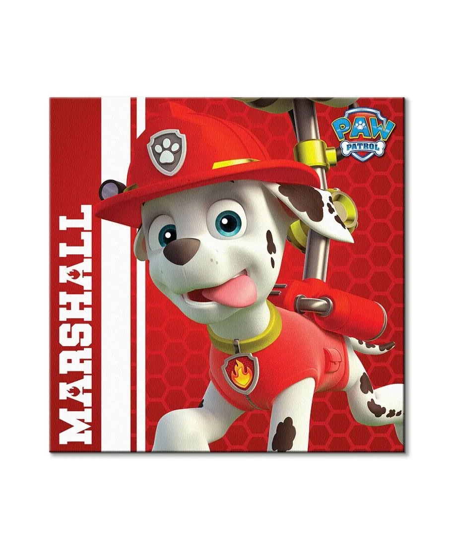 Paw Patrol (Marshall Ready To Rescue) - obraz na płótnie Naciągnięty na sosnowe krosna. Gotowy do zawieszenia na ścianę. Wykonany z najwyższą dbałością o detale. Obraz jest ostry a barwy nasycone. Ten egzemplarz posiada zadrukowane boki, nie trzeba go dodatkowo oprawiać. Płótno bawełniane na który został naniesiony obraz jest bardzo mocne i posiada ciekawą fakturę. Blejtrama wykonana jest natomiast z grubego drzewa sosnowego. Jest solidna, jej szerokość to 3,5 cm a grubość 2 cm. Kupując ten produkt masz pewność, że kupujesz z legalnego źródła i wspierasz artystów. Obraz jest oryginalny i posiada licencję. Lubisz wyróżniać się ciekawymi, ekskluzywnymi dekoracjami na ścianę? Ten obraz jest idealny dla Ciebie. Nikt nie przejdzie obojętnie obok niego, jest po prostu piękny. Dane techniczne Płótno bawełniane 300g/m2 Sosnowe krosna o grubości 2 cm i szerokości 3,5 cm Obraz zadrukowany cyfrowo Wymiary obrazu 40x40 cm