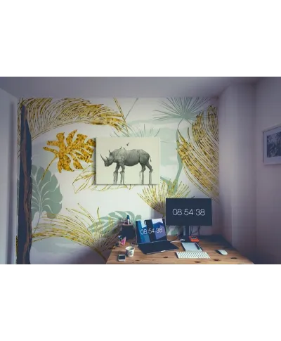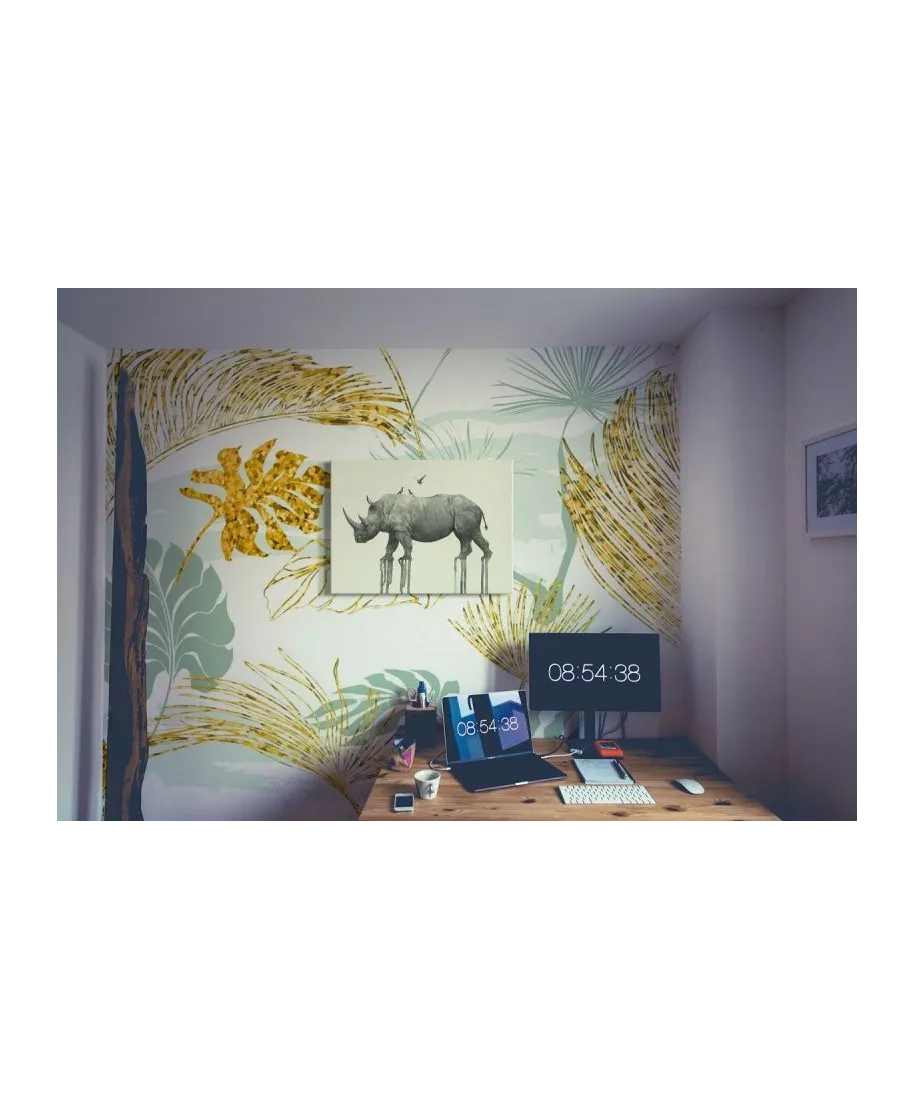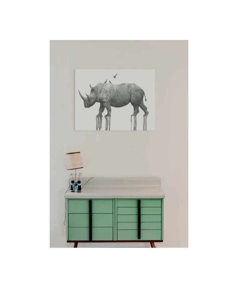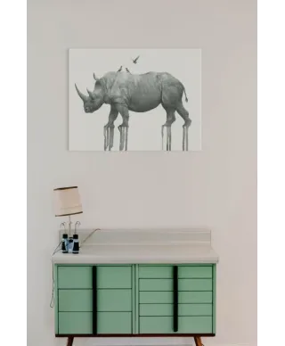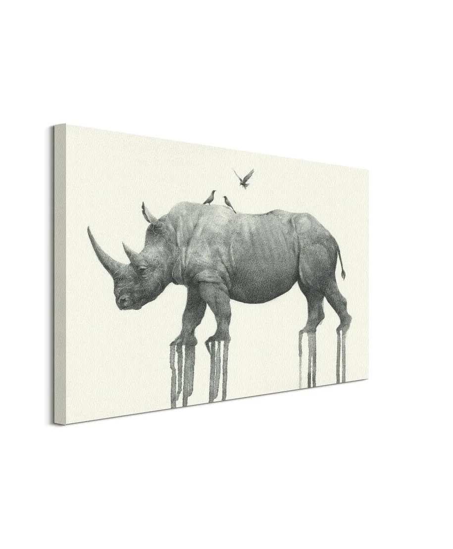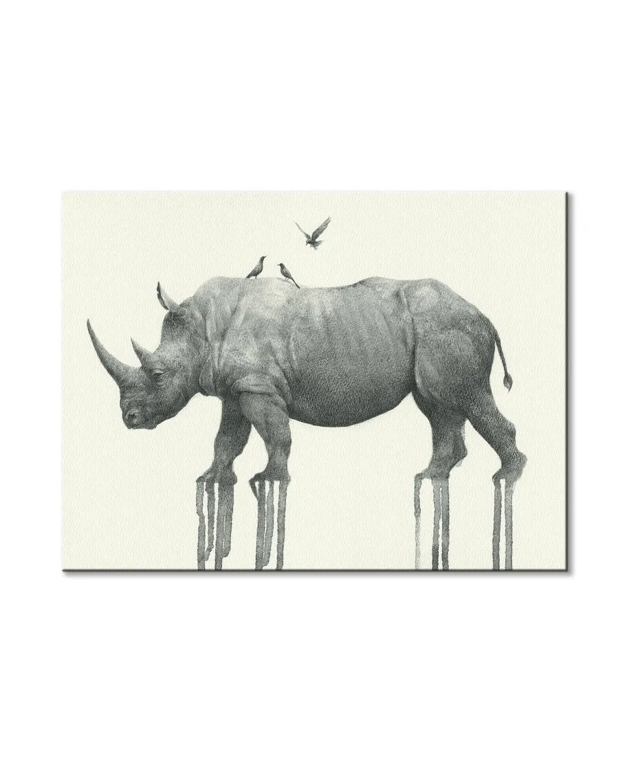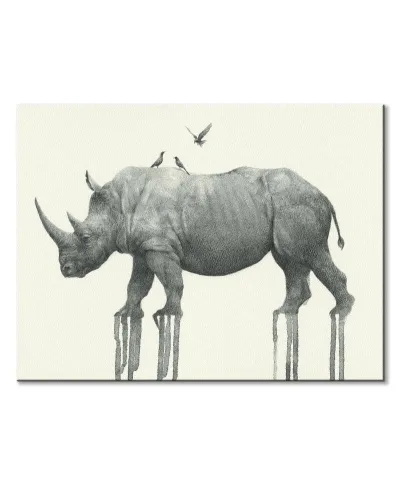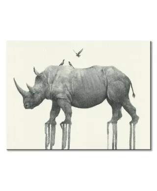 Majestic Rhinoceros - obraz na płótnie Naciągnięty na sosnowe krosna. Gotowy do zawieszenia na ścianę. Wykonany z najwyższą dbałością o detale. Obraz jest ostry a barwy nasycone. Ten egzemplarz posiada zadrukowane boki, nie trzeba go dodatkowo oprawiać. Płótno bawełniane na który został naniesiony obraz jest bardzo mocne i posiada ciekawą fakturę. Blejtrama wykonana jest natomiast z grubego drzewa sosnowego. Jest solidna, jej szerokość to 3,5 cm a grubość 2 cm. Kupując ten produkt masz pewność, że kupujesz z legalnego źródła i wspierasz artystów. Obraz jest oryginalny i posiada licencję. Lubisz wyróżniać się ciekawymi, ekskluzywnymi dekoracjami na ścianę? Ten obraz jest idealny dla Ciebie. Nikt nie przejdzie obojętnie obok niego, jest po prostu piękny. Dane techniczne Płótno bawełniane 300g/m2 Sosnowe krosna o grubości 2 cm i szerokości 3,5 cm Obraz zadrukowany cyfrowo Wymiary obrazu 80x60 cm