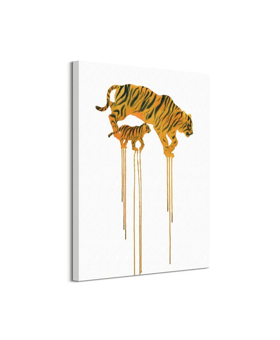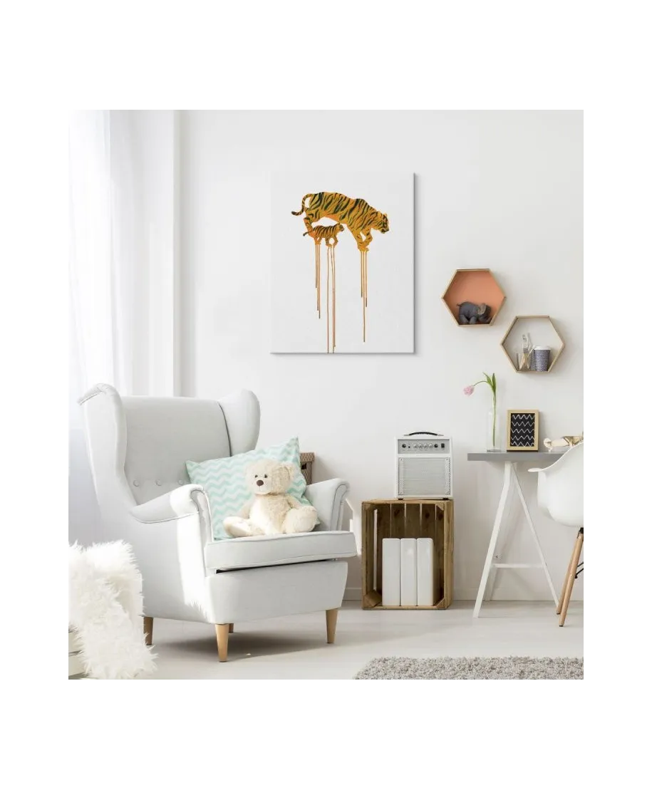 Tigers - obraz na płótnie Naciągnięty na sosnowe krosna. Gotowy do zawieszenia na ścianę. Wykonany z najwyższą dbałością o detale. Obraz jest ostry a barwy nasycone. Ten egzemplarz posiada zadrukowane boki, nie trzeba go dodatkowo oprawiać. Płótno bawełniane na który został naniesiony obraz jest bardzo mocne i posiada ciekawą fakturę. Blejtrama wykonana jest natomiast z grubego drzewa sosnowego. Jest solidna, jej szerokość to 3,5 cm a grubość 2 cm. Kupując ten produkt masz pewność, że kupujesz z legalnego źródła i wspierasz artystów. Obraz jest oryginalny i posiada licencję. Lubisz wyróżniać się ciekawymi, ekskluzywnymi dekoracjami na ścianę? Ten obraz jest idealny dla Ciebie. Nikt nie przejdzie obojętnie obok niego, jest po prostu piękny. Dane techniczne Płótno bawełniane 300g/m2 Sosnowe krosna o grubości 2 cm i szerokości 3,5 cm Obraz zadrukowany cyfrowo Wymiary obrazu 60x80 cm