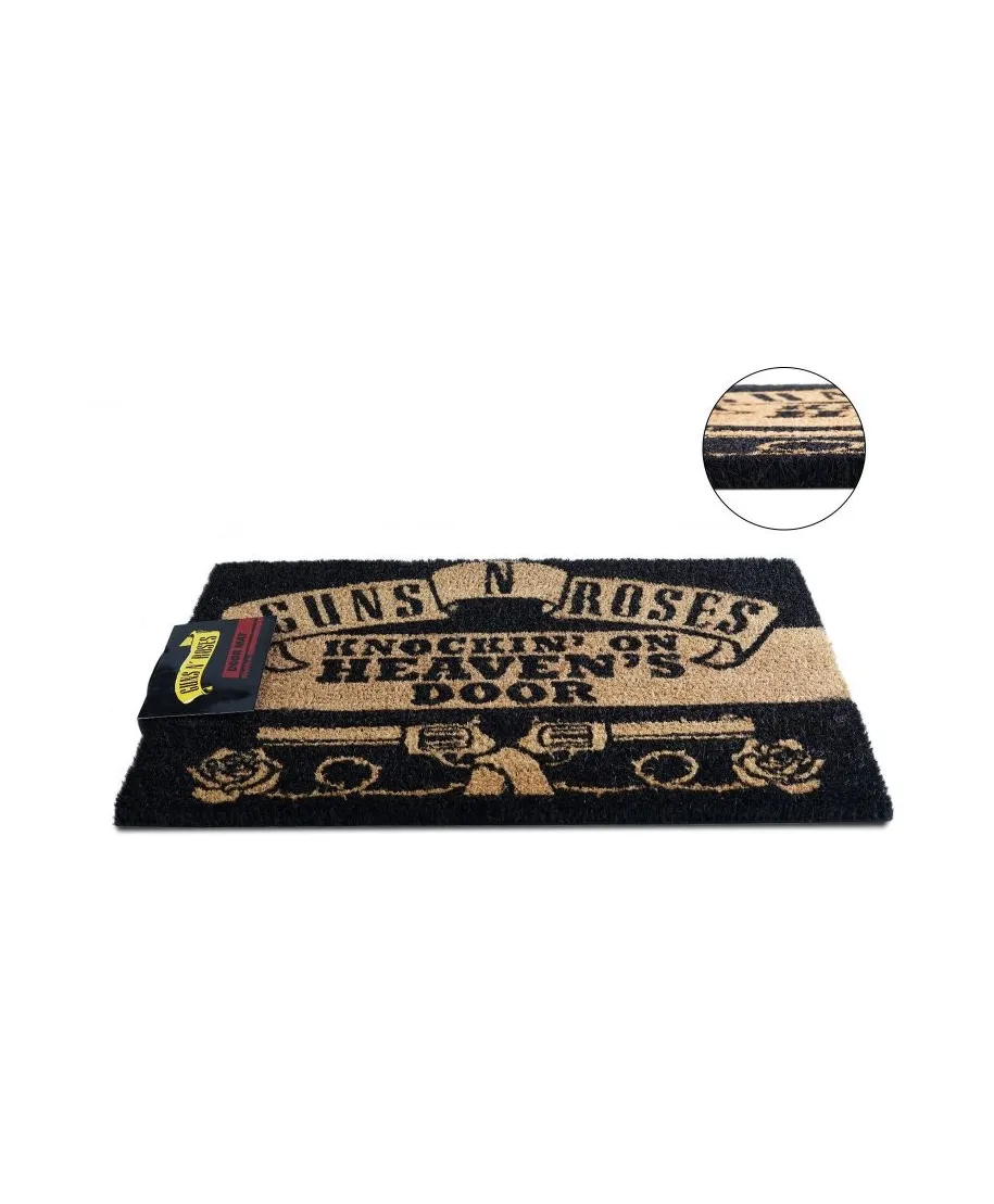 Wycieraczka Guns N' Roses (Knockin' On Heaven's Door) Z naszą wycieraczką zachowasz czystość w domu i zaskoczysz znajomych już przy wejściu. Wycieraczka z oryginalnym motywem to nie tylko przydatny gadżet, ale też świetna ozdoba mieszkania. Wykonana jest z naturalnego włosia kokosowego. Została podklejona gumą aby zapobiec poślizgowi. Jest oryginalna, to oficjalne, licencjonowane wydanie. Rozmiar wycieraczki: 40x60 cm. Wysokość: 1,5 cm. Marka: Pyramid Posters
