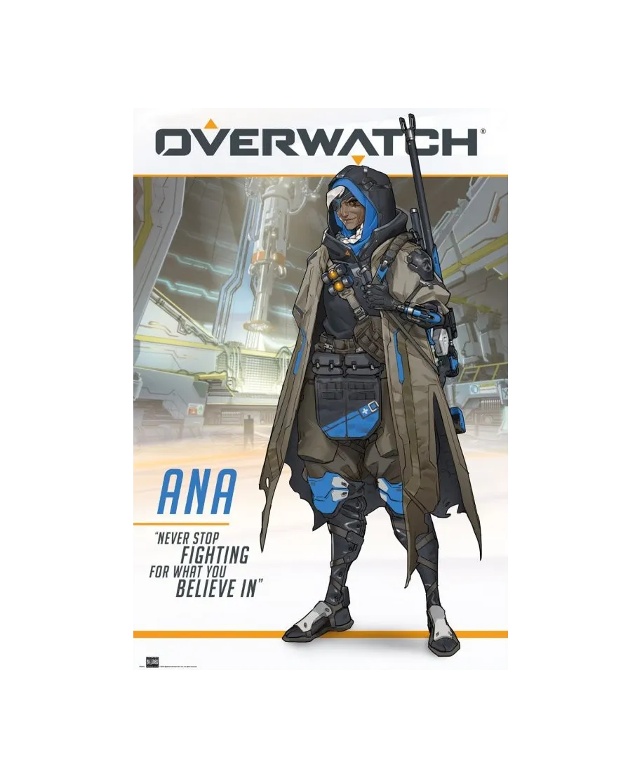 Oryginalny plakat na ścianę Overwatch Ana Plakaty wyróżniają się rewelecyjną jakością, intensywnymi i wyrazistymi barwami. Papier gruby i trwały, plakaty świetnie układają się w ramach za szybą. Produkty posiadają oryginalną licencję producenta, to ich oficjalne wydanie. Plakaty posiadają matową powierzchnię, dzięki czemu nie odbija się od nich intensywne światło. Szczegóły techniczne: wydruk na mocnym i grubym papierze 150g/m2 wymiary plakatów: 61x91,5 cm marka: GBeye