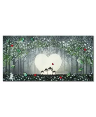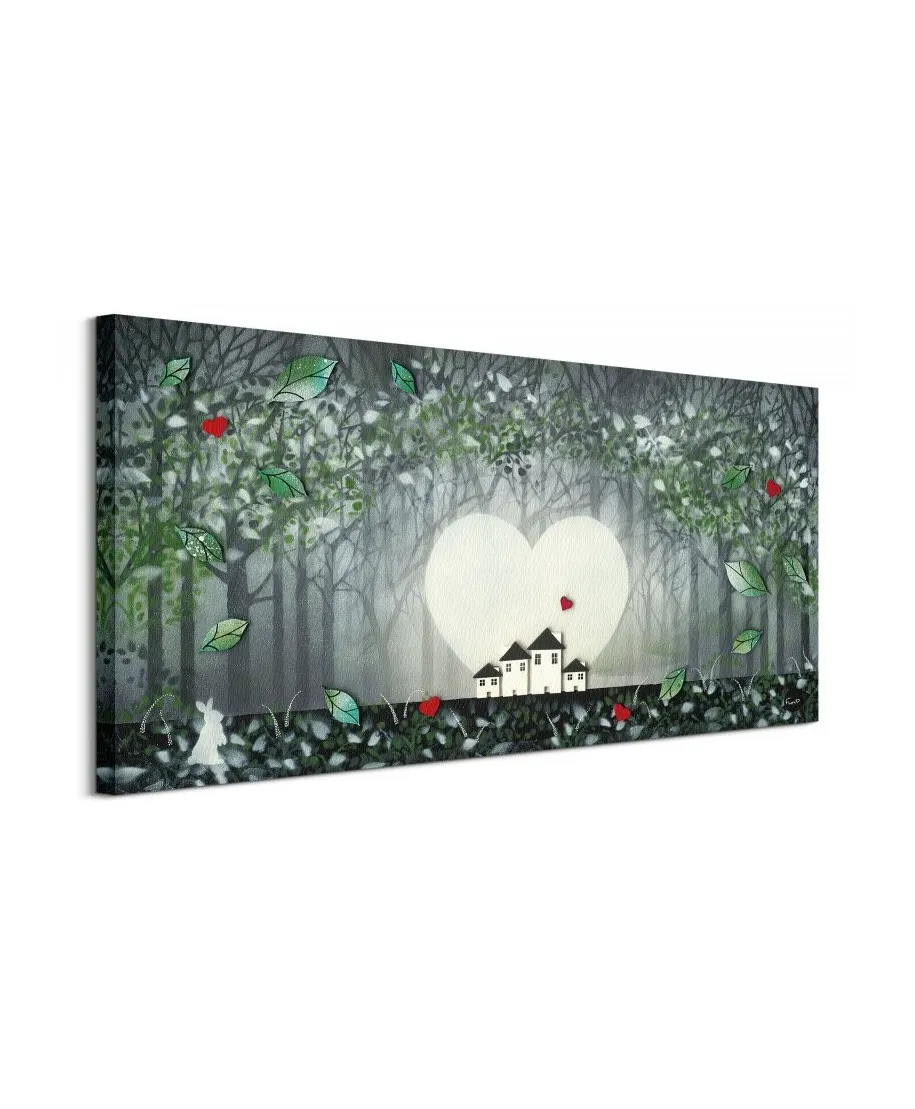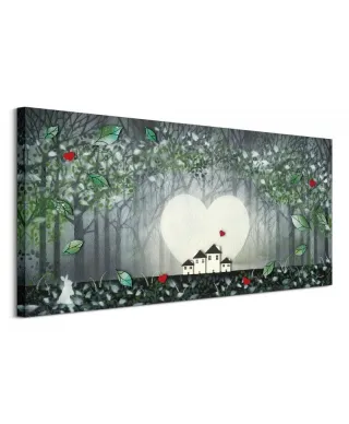 Love Nest - obraz na płótnie Naciągnięty na sosnowe krosna. Gotowy do zawieszenia na ścianę. Wykonany z najwyższą dbałością o detale. Obraz jest ostry a barwy nasycone. Ten egzemplarz posiada zadrukowane boki, nie trzeba go dodatkowo oprawiać. Płótno bawełniane na który został naniesiony obraz jest bardzo mocne i posiada ciekawą fakturę. Blejtrama wykonana jest natomiast z grubego drzewa sosnowego. Jest solidna, jej szerokość to 3,5 cm a grubość 2 cm. Kupując ten produkt masz pewność, że kupujesz z legalnego źródła i wspierasz artystów. Obraz jest oryginalny i posiada licencję. Lubisz wyróżniać się ciekawymi, ekskluzywnymi dekoracjami na ścianę? Ten obraz jest idealny dla Ciebie. Nikt nie przejdzie obojętnie obok niego, jest po prostu piękny. Dane techniczne: Płótno bawełniane 300g/m2. Sosnowe krosna o grubości 2 cm i szerokości 3,5 cm. Obraz zadrukowany cyfrowo. Wymiary obrazu 100x50 cm. Marka: Pyramid Posters.