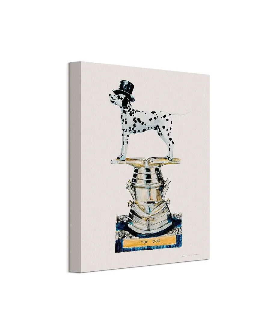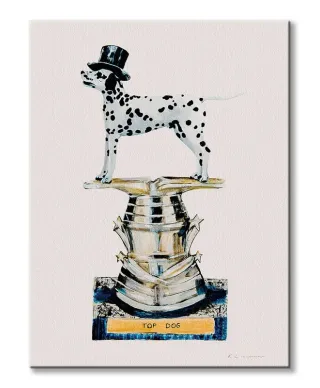 Top Dog - obraz na płótnie Naciągnięty na sosnowe krosna. Gotowy do zawieszenia na ścianę. Wykonany z najwyższą dbałością o detale. Obraz jest ostry a barwy nasycone. Ten egzemplarz posiada zadrukowane boki, nie trzeba go dodatkowo oprawiać. Płótno bawełniane na który został naniesiony obraz jest bardzo mocne i posiada ciekawą fakturę. Blejtrama wykonana jest natomiast z grubego drzewa sosnowego. Jest solidna, jej szerokość to 3,5 cm a grubość 2 cm. Kupując ten produkt masz pewność, że kupujesz z legalnego źródła i wspierasz artystów. Obraz jest oryginalny i posiada licencję. Lubisz wyróżniać się ciekawymi, ekskluzywnymi dekoracjami na ścianę? Ten obraz jest idealny dla Ciebie. Nikt nie przejdzie obojętnie obok niego, jest po prostu piękny. Dane techniczne: Płótno bawełniane 300g/m2. Sosnowe krosna o grubości 2 cm i szerokości 3,5 cm. Obraz zadrukowany cyfrowo. Wymiary obrazu 30x40 cm. Marka: Pyramid Posters.