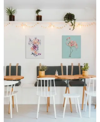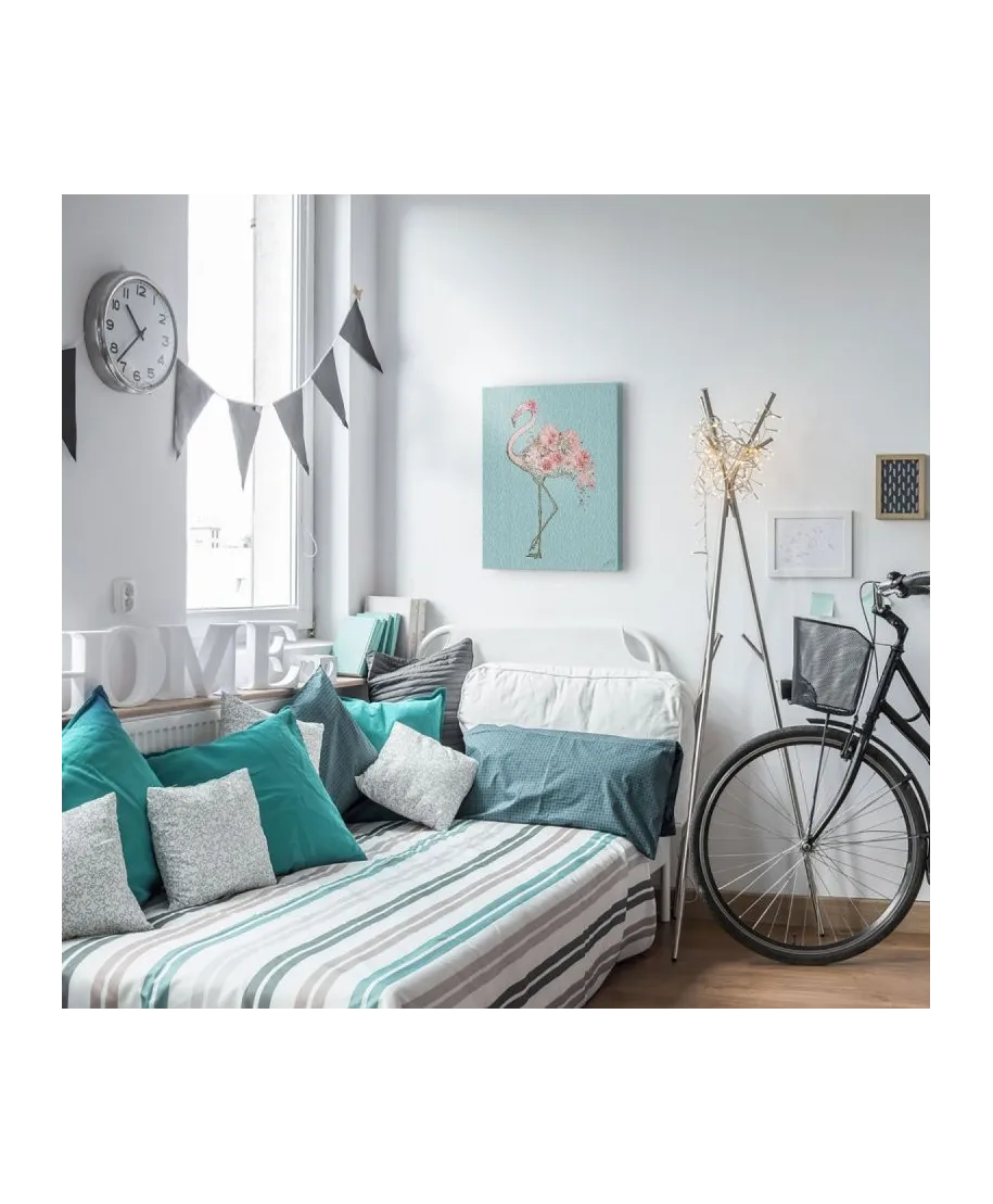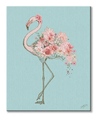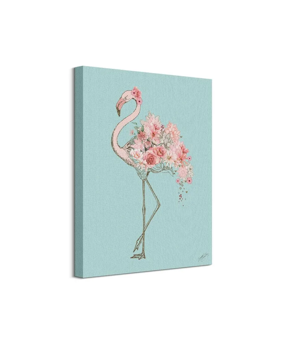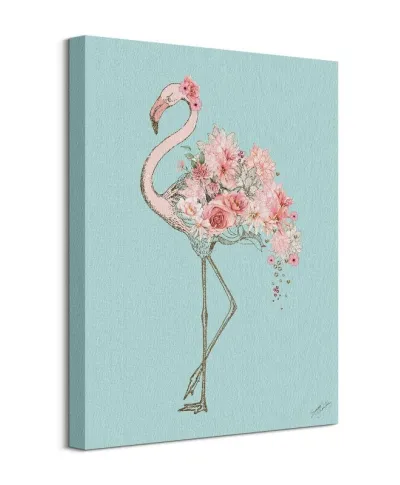 Floral Flamingo - obraz na płótnie Naciągnięty na sosnowe krosna. Gotowy do zawieszenia na ścianę. Wykonany z najwyższą dbałością o detale. Obraz jest ostry a barwy nasycone. Ten egzemplarz posiada zadrukowane boki, nie trzeba go dodatkowo oprawiać. Płótno bawełniane na który został naniesiony obraz jest bardzo mocne i posiada ciekawą fakturę. Blejtrama wykonana jest natomiast z grubego drzewa sosnowego. Jest solidna, jej szerokość to 3,5 cm a grubość 2 cm. Kupując ten produkt masz pewność, że kupujesz z legalnego źródła i wspierasz artystów. Obraz jest oryginalny i posiada licencję. Lubisz wyróżniać się ciekawymi, ekskluzywnymi dekoracjami na ścianę? Ten obraz jest idealny dla Ciebie. Nikt nie przejdzie obojętnie obok niego, jest po prostu piękny. Dane techniczne: Płótno bawełniane 300g/m2. Sosnowe krosna o grubości 2 cm i szerokości 3,5 cm. Obraz zadrukowany cyfrowo. Wymiary obrazu 40x50 cm. Marka: Pyramid Posters.