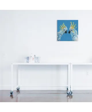 Cockatwo - obraz na płótnie Naciągnięty na sosnowe krosna. Gotowy do zawieszenia na ścianę. Wykonany z najwyższą dbałością o detale. Obraz jest ostry a barwy nasycone. Ten egzemplarz posiada zadrukowane boki, nie trzeba go dodatkowo oprawiać. Płótno bawełniane na który został naniesiony obraz jest bardzo mocne i posiada ciekawą fakturę. Blejtrama wykonana jest natomiast z grubego drzewa sosnowego. Jest solidna, jej szerokość to 3,5 cm a grubość 2 cm. Kupując ten produkt masz pewność, że kupujesz z legalnego źródła i wspierasz artystów. Obraz jest oryginalny i posiada licencję. Lubisz wyróżniać się ciekawymi, ekskluzywnymi dekoracjami na ścianę? Ten obraz jest idealny dla Ciebie. Nikt nie przejdzie obojętnie obok niego, jest po prostu piękny. Dane techniczne: Płótno bawełniane 300g/m2. Sosnowe krosna o grubości 2 cm i szerokości 3,5 cm. Obraz zadrukowany cyfrowo. Wymiary obrazu 50x40 cm. Marka: Pyramid Posters.