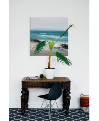 Shoreline - obraz na płótnie Naciągnięty na sosnowe krosna. Gotowy do zawieszenia na ścianę. Wykonany z najwyższą dbałością o detale. Obraz jest ostry a barwy nasycone. Ten egzemplarz posiada zadrukowane boki, nie trzeba go dodatkowo oprawiać. Płótno bawełniane na który został naniesiony obraz jest bardzo mocne i posiada ciekawą fakturę. Blejtrama wykonana jest natomiast z grubego drzewa sosnowego. Jest solidna, jej szerokość to 3,5 cm a grubość 2 cm. Kupując ten produkt masz pewność, że kupujesz z legalnego źródła i wspierasz artystów. Obraz jest oryginalny i posiada licencję. Lubisz wyróżniać się ciekawymi, ekskluzywnymi dekoracjami na ścianę? Ten obraz jest idealny dla Ciebie. Nikt nie przejdzie obojętnie obok niego, jest po prostu piękny. Dane techniczne: Płótno bawełniane 300g/m2. Sosnowe krosna o grubości 2 cm i szerokości 3,5 cm. Obraz zadrukowany cyfrowo. Wymiary obrazu 60x60 cm. Marka: Pyramid Posters.