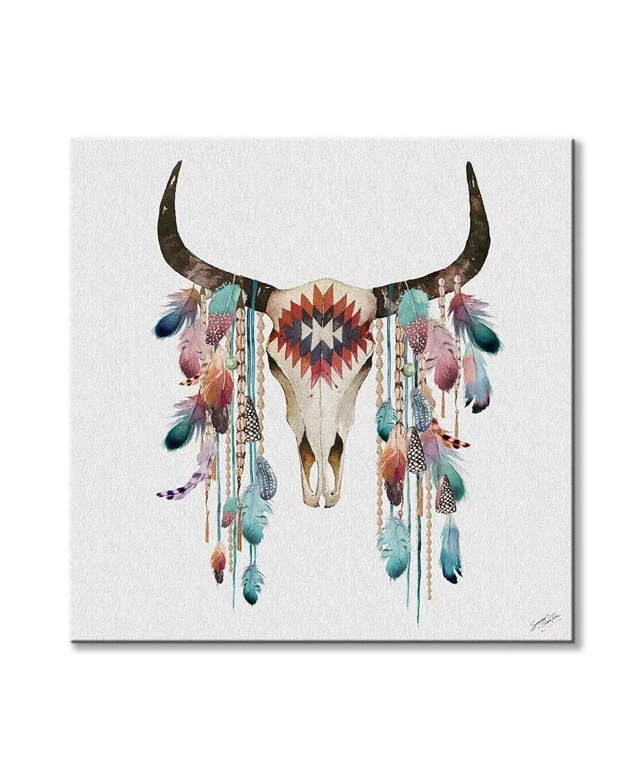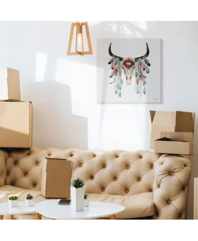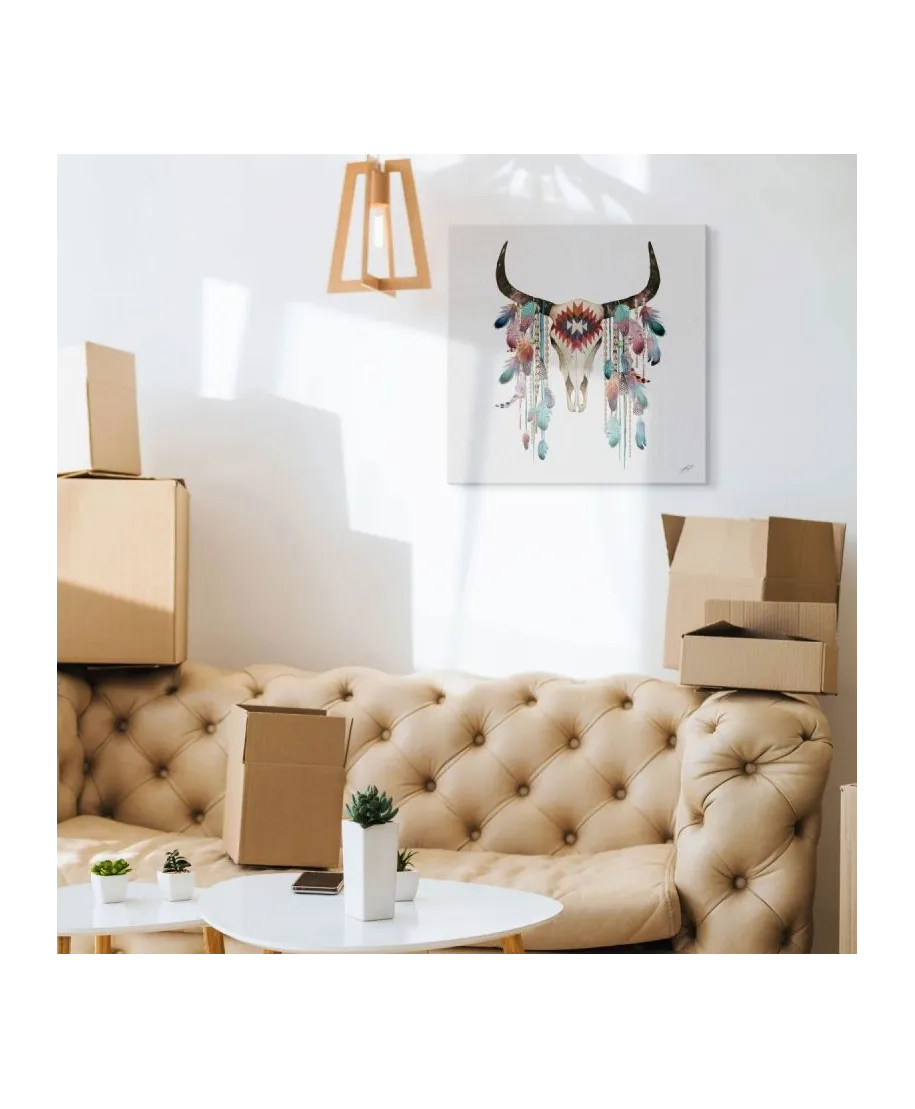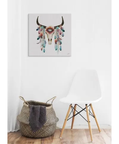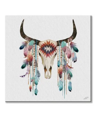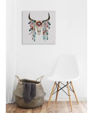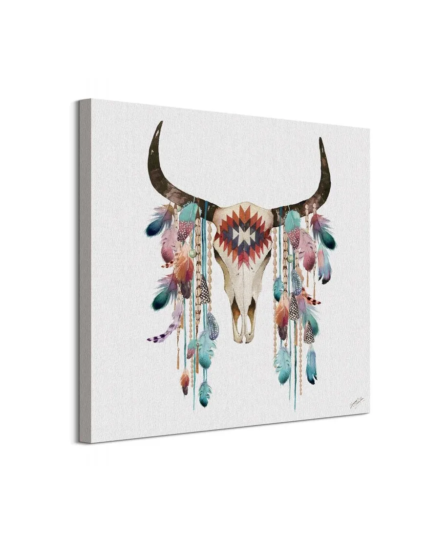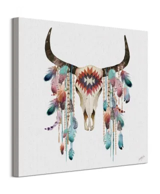 Tribal Skull - obraz na płótnie Naciągnięty na sosnowe krosna. Gotowy do zawieszenia na ścianę. Wykonany z najwyższą dbałością o detale. Obraz jest ostry a barwy nasycone. Ten egzemplarz posiada zadrukowane boki, nie trzeba go dodatkowo oprawiać. Płótno bawełniane na który został naniesiony obraz jest bardzo mocne i posiada ciekawą fakturę. Blejtrama wykonana jest natomiast z grubego drzewa sosnowego. Jest solidna, jej szerokość to 3,5 cm a grubość 2 cm. Kupując ten produkt masz pewność, że kupujesz z legalnego źródła i wspierasz artystów. Obraz jest oryginalny i posiada licencję. Lubisz wyróżniać się ciekawymi, ekskluzywnymi dekoracjami na ścianę? Ten obraz jest idealny dla Ciebie. Nikt nie przejdzie obojętnie obok niego, jest po prostu piękny. Dane techniczne: Płótno bawełniane 300g/m2. Sosnowe krosna o grubości 2 cm i szerokości 3,5 cm. Obraz zadrukowany cyfrowo. Wymiary obrazu 60x60 cm. Marka: Pyramid Posters.