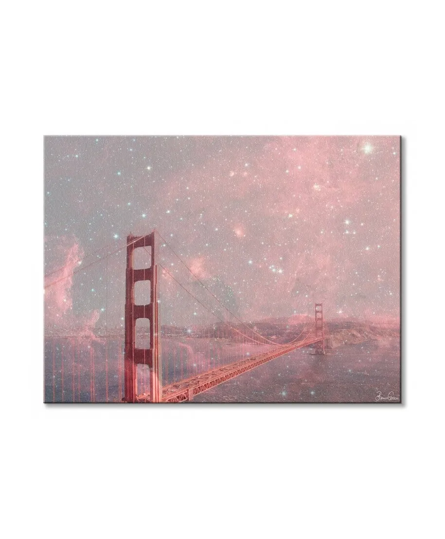 Stardust Covering San Francisco - obraz na płótnie Naciągnięty na sosnowe krosna. Gotowy do zawieszenia na ścianę. Wykonany z najwyższą dbałością o detale. Obraz jest ostry a barwy nasycone. Ten egzemplarz posiada zadrukowane boki, nie trzeba go dodatkowo oprawiać. Płótno bawełniane na który został naniesiony obraz jest bardzo mocne i posiada ciekawą fakturę. Blejtrama wykonana jest natomiast z grubego drzewa sosnowego. Jest solidna, jej szerokość to 3,5 cm a grubość 2 cm. Kupując ten produkt masz pewność, że kupujesz z legalnego źródła i wspierasz artystów. Obraz jest oryginalny i posiada licencję. Lubisz wyróżniać się ciekawymi, ekskluzywnymi dekoracjami na ścianę? Ten obraz jest idealny dla Ciebie. Nikt nie przejdzie obojętnie obok niego, jest po prostu piękny. Dane techniczne: Płótno bawełniane 300g/m2. Sosnowe krosna o grubości 2 cm i szerokości 3,5 cm. Obraz zadrukowany cyfrowo. Wymiary obrazu 60x80 cm. Marka: Pyramid Posters.