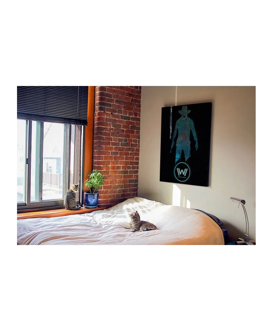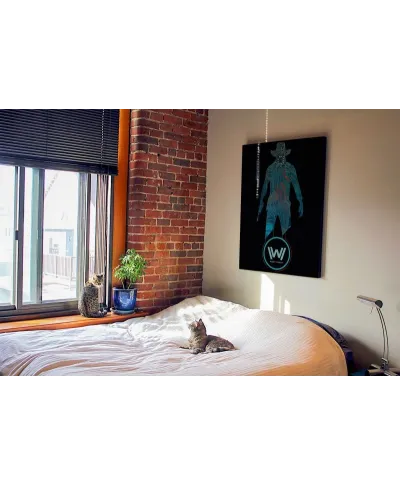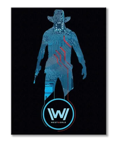 Westworld Man in Black - obraz na płótnie Naciągnięty na sosnowe krosna. Gotowy do zawieszenia na ścianę. Wykonany z najwyższą dbałością o detale. Obraz jest ostry a barwy nasycone. Ten egzemplarz posiada zadrukowane boki, nie trzeba go dodatkowo oprawiać. Płótno bawełniane na który został naniesiony obraz jest bardzo mocne i posiada ciekawą fakturę. Blejtrama wykonana jest natomiast z grubego drzewa sosnowego. Jest solidna, jej szerokość to 3,5 cm a grubość 2 cm. Kupując ten produkt masz pewność, że kupujesz z legalnego źródła i wspierasz artystów. Obraz jest oryginalny i posiada licencję. Lubisz wyróżniać się ciekawymi, ekskluzywnymi dekoracjami na ścianę? Ten obraz jest idealny dla Ciebie. Nikt nie przejdzie obojętnie obok niego, jest po prostu piękny. Dane techniczne: Płótno bawełniane 300g/m2. Sosnowe krosna o grubości 2 cm i szerokości 3,5 cm. Obraz zadrukowany cyfrowo. Wymiary obrazu 60x80 cm. Marka: Pyramid Posters.