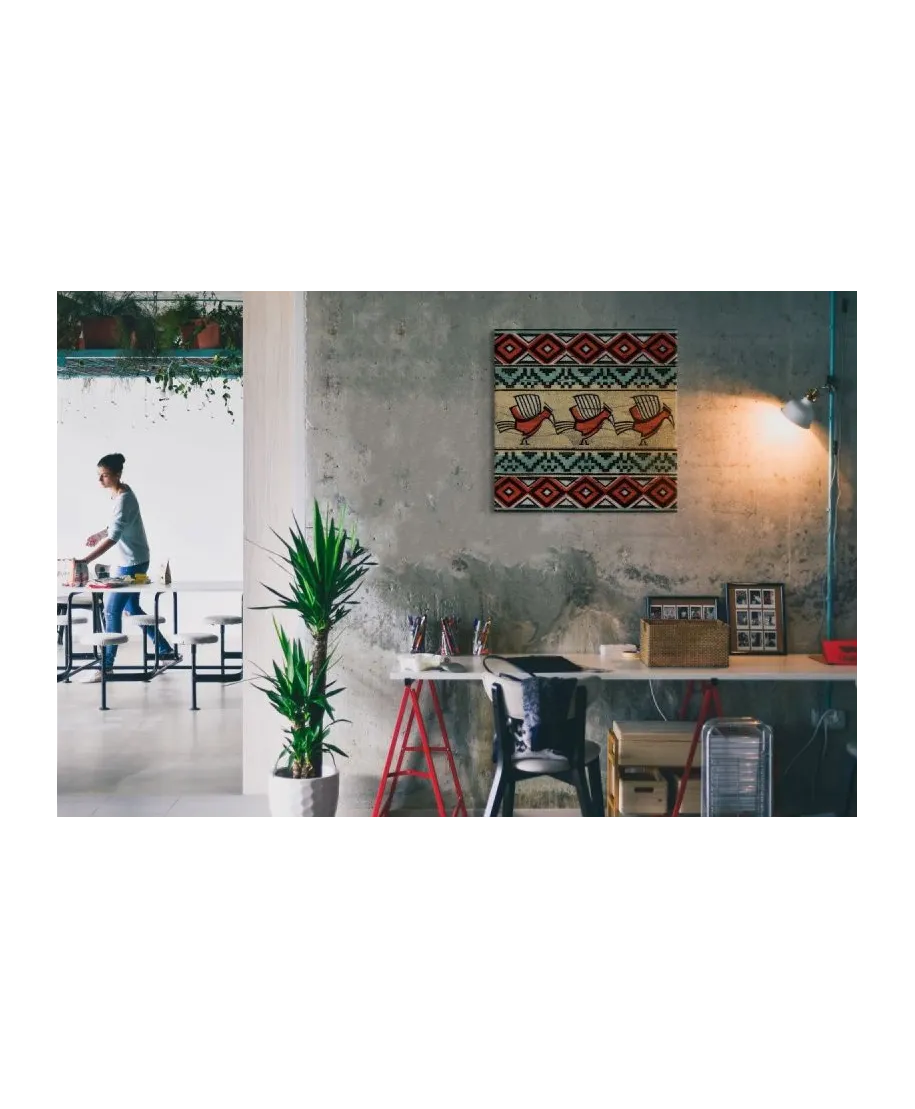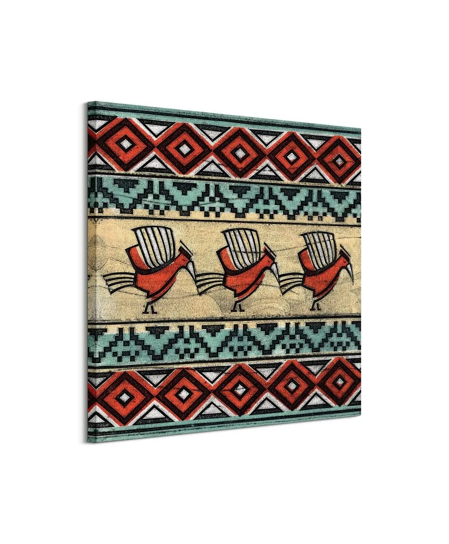 Tribal Birds - obraz na płótnie Naciągnięty na sosnowe krosna. Gotowy do zawieszenia na ścianę. Wykonany z najwyższą dbałością o detale. Obraz jest ostry a barwy nasycone. Ten egzemplarz posiada zadrukowane boki, nie trzeba go dodatkowo oprawiać. Płótno bawełniane na który został naniesiony obraz jest bardzo mocne i posiada ciekawą fakturę. Blejtrama wykonana jest natomiast z grubego drzewa sosnowego. Jest solidna, jej szerokość to 3,5 cm a grubość 2 cm. Kupując ten produkt masz pewność, że kupujesz z legalnego źródła i wspierasz artystów. Obraz jest oryginalny i posiada licencję. Lubisz wyróżniać się ciekawymi, ekskluzywnymi dekoracjami na ścianę? Ten obraz jest idealny dla Ciebie. Nikt nie przejdzie obojętnie obok niego, jest po prostu piękny. Dane techniczne: Płótno bawełniane 300g/m2. Sosnowe krosna o grubości 2 cm i szerokości 3,5 cm. Obraz zadrukowany cyfrowo. Wymiary obrazu 85x85 cm. Marka: Pyramid Posters.