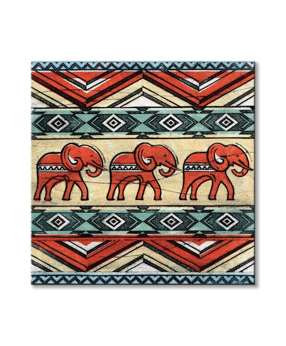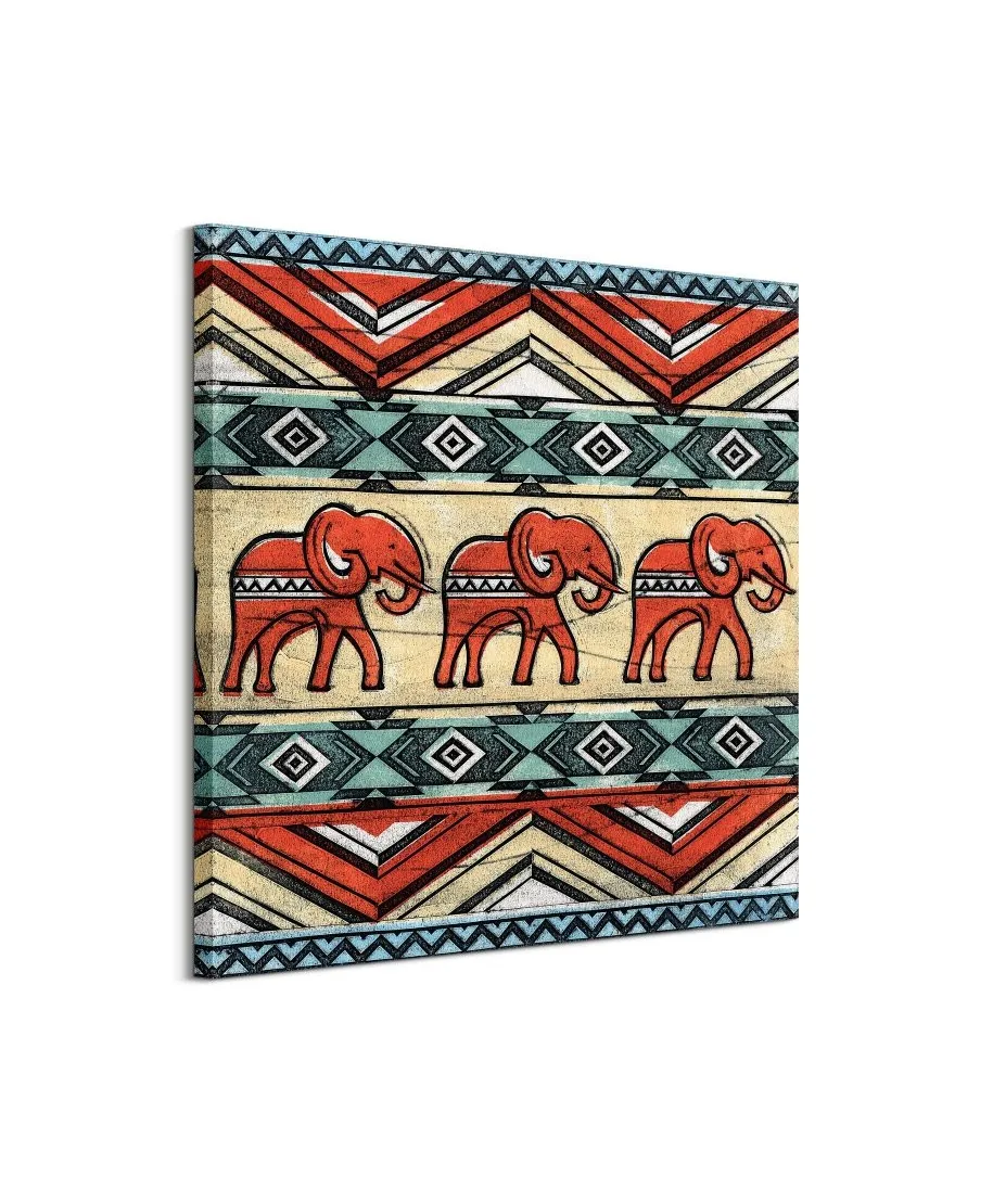 Tribal Elephants - obraz na płótnie Naciągnięty na sosnowe krosna. Gotowy do zawieszenia na ścianę. Wykonany z najwyższą dbałością o detale. Obraz jest ostry a barwy nasycone. Ten egzemplarz posiada zadrukowane boki, nie trzeba go dodatkowo oprawiać. Płótno bawełniane na który został naniesiony obraz jest bardzo mocne i posiada ciekawą fakturę. Blejtrama wykonana jest natomiast z grubego drzewa sosnowego. Jest solidna, jej szerokość to 3,5 cm a grubość 2 cm. Kupując ten produkt masz pewność, że kupujesz z legalnego źródła i wspierasz artystów. Obraz jest oryginalny i posiada licencję. Lubisz wyróżniać się ciekawymi, ekskluzywnymi dekoracjami na ścianę? Ten obraz jest idealny dla Ciebie. Nikt nie przejdzie obojętnie obok niego, jest po prostu piękny. Dane techniczne: Płótno bawełniane 300g/m2. Sosnowe krosna o grubości 2 cm i szerokości 3,5 cm. Obraz zadrukowany cyfrowo. Wymiary obrazu 85x85 cm. Marka: Pyramid Posters.