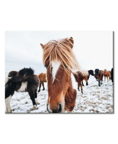 Oryginalny obraz na płótnie Icelandic Horse Oryginalny i licencjonowany obraz na płótnie idealny na każdą ścianę. Nasze obrazy wyróżniają: Fantastyczne barwy Wysokie nasycenie barw i ostrość, kolory utrzymują się przez długie lata. Płótno wysokiej jakości Płótno bawełniane 300g/m2 jest trwałe i mocne, jego struktura jest naturalna. Trwałe kolory, Dodatkowo lakierowana powierzchnia sprawia, że kolory są żywe przez dziesięciolecia. Solidna rama, Wykonana jest z naturalnego, sosnowego drewna, jest mocna i gruba a obraz solidny i wytrzymały. Zadrukowane boki, obrazy posiadają zadrukowane boki, nie potrzebują żadnej dodatkowej oprawy. Szczegóły techniczne: wydruk na płótnie bawełnianym 300g/m2 sosnowe krosna o grubości 2 cm i szerokości 3,5 cm druk cyfrowy wymiary obrazów 80x60 cm