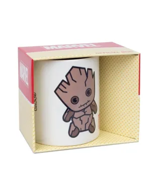 Marvel Kawaii Groot – kubek z uchem Nasz kubek z uchem z ulubionym motywem to idealny pomysł na urozmaicenie kuchennej zastawy, oraz świetny pomysł na prezent dla bliskiej osoby. Nasz produkt jest markowy, posiada oryginalną licencję Jest stworzony z najwyższej jakości porcelany, to gwarancja koloru o wysokim połysku Grafika na kubku jest trwała, w cyfrowej jakości Można myć go w zmywarce i podgrzewać w mikrofalówce Szczegóły techniczne: pojemność 315ml marka: Pyramid Posters