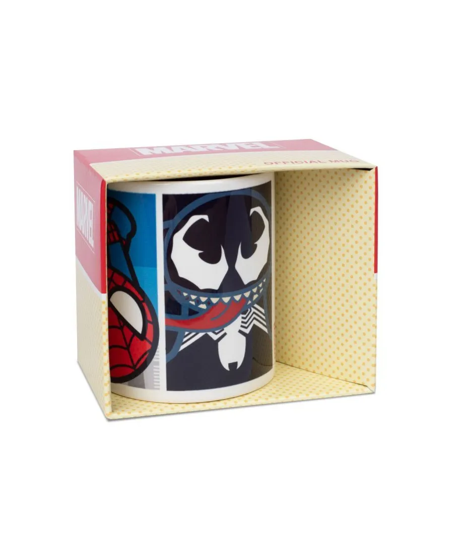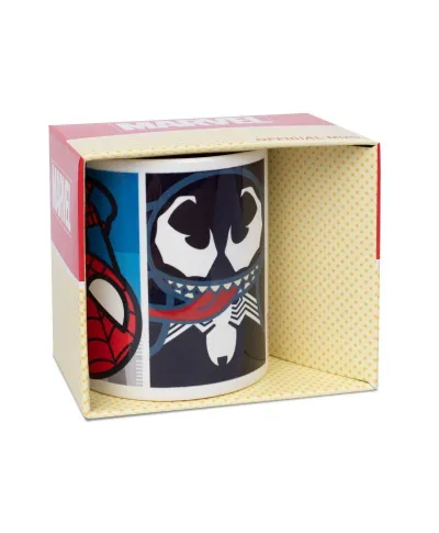 Marvel Kawaii Spider-Man Villians – kubek z uchem Nasz kubek z uchem z ulubionym motywem to idealny pomysł na urozmaicenie kuchennej zastawy, oraz świetny pomysł na prezent dla bliskiej osoby. Nasz produkt jest markowy, posiada oryginalną licencję Jest stworzony z najwyższej jakości porcelany, to gwarancja koloru o wysokim połysku Grafika na kubku jest trwała, w cyfrowej jakości Można myć go w zmywarce i podgrzewać w mikrofalówce Szczegóły techniczne: pojemność 315ml marka: Pyramid Posters
